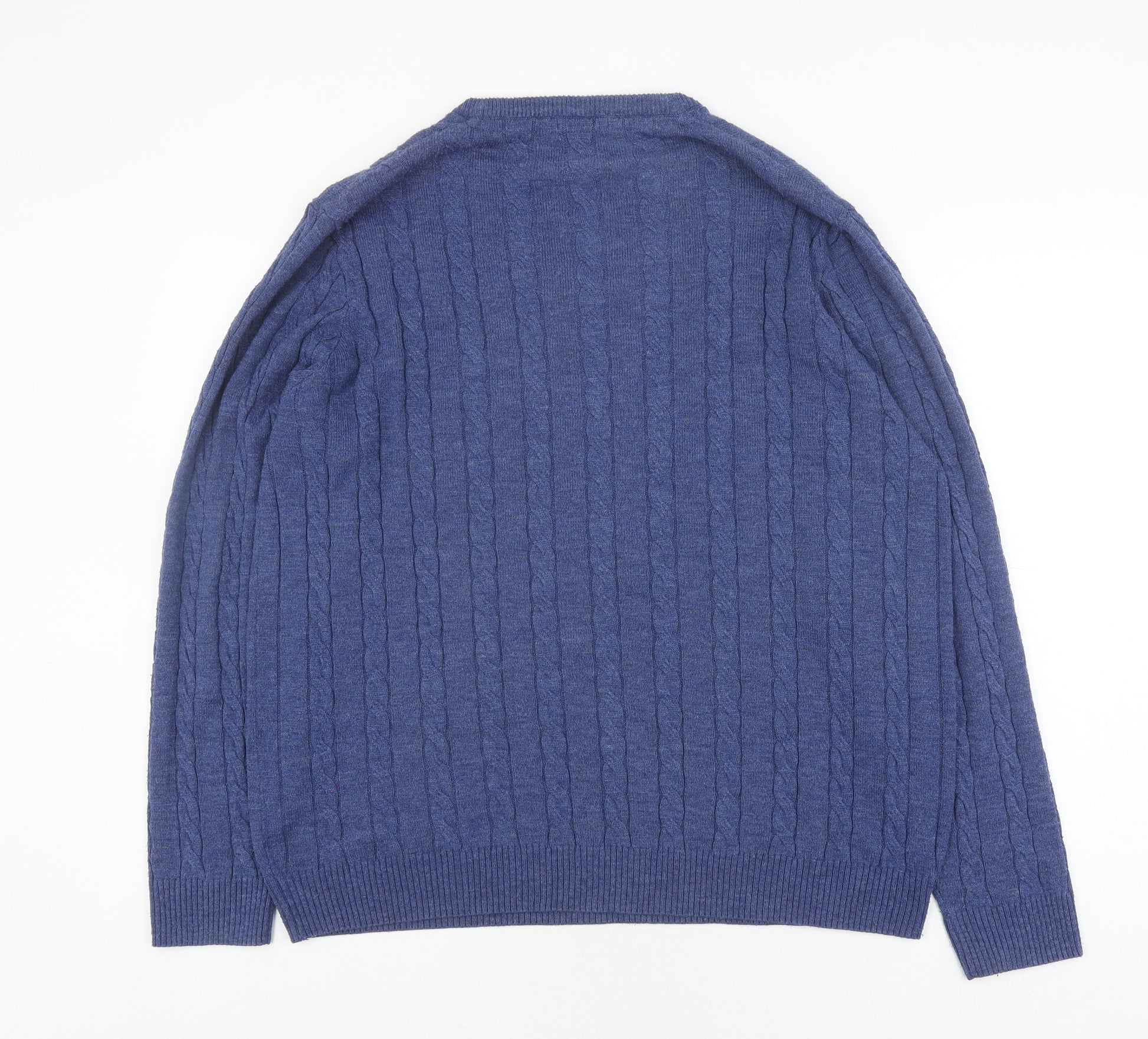 Cotton Traders Men's Blue V-Neck Cable Knit Jumper L
