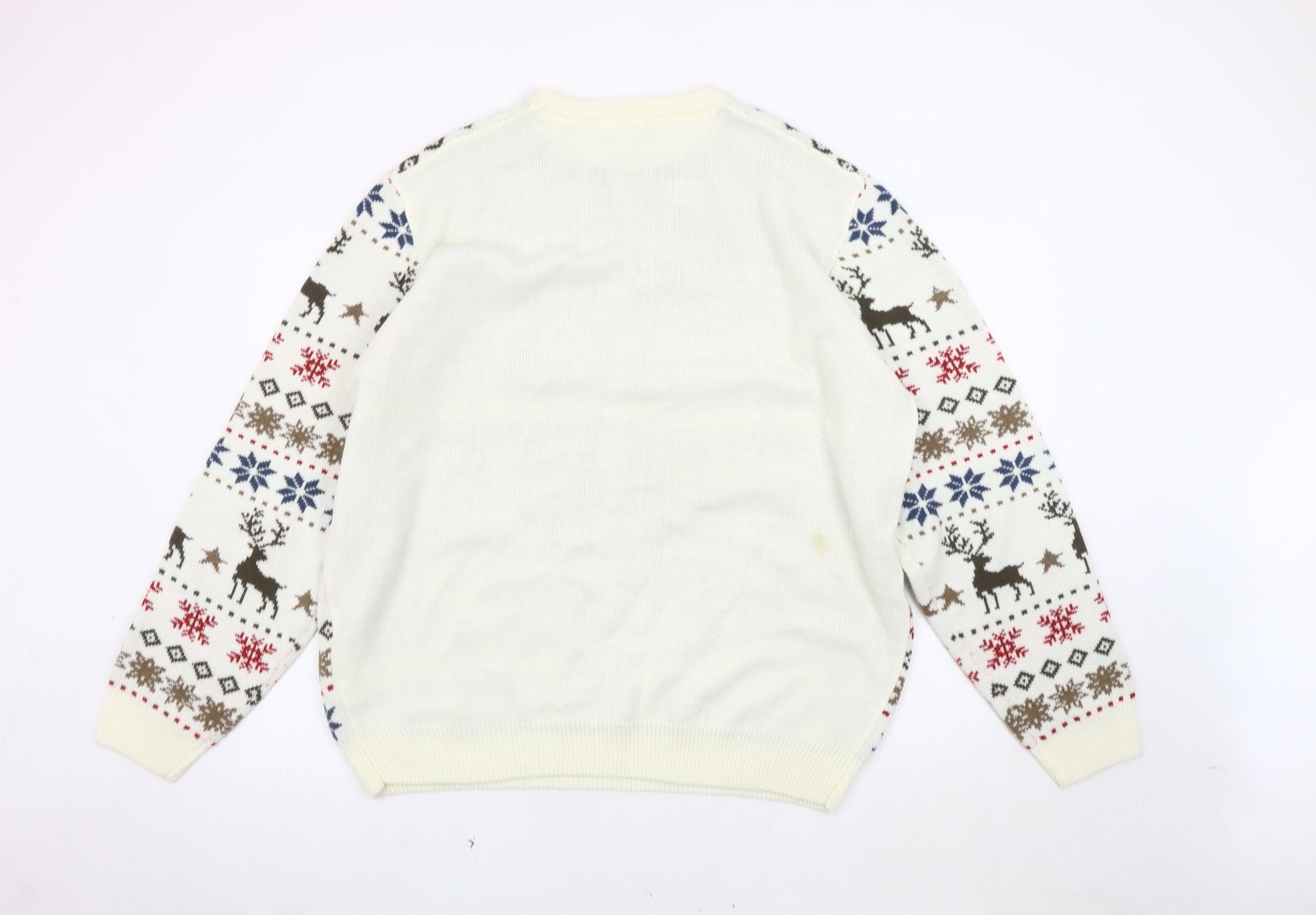 Cotton Traders Men's Ivory Christmas Pullover, 2XL, Knit
