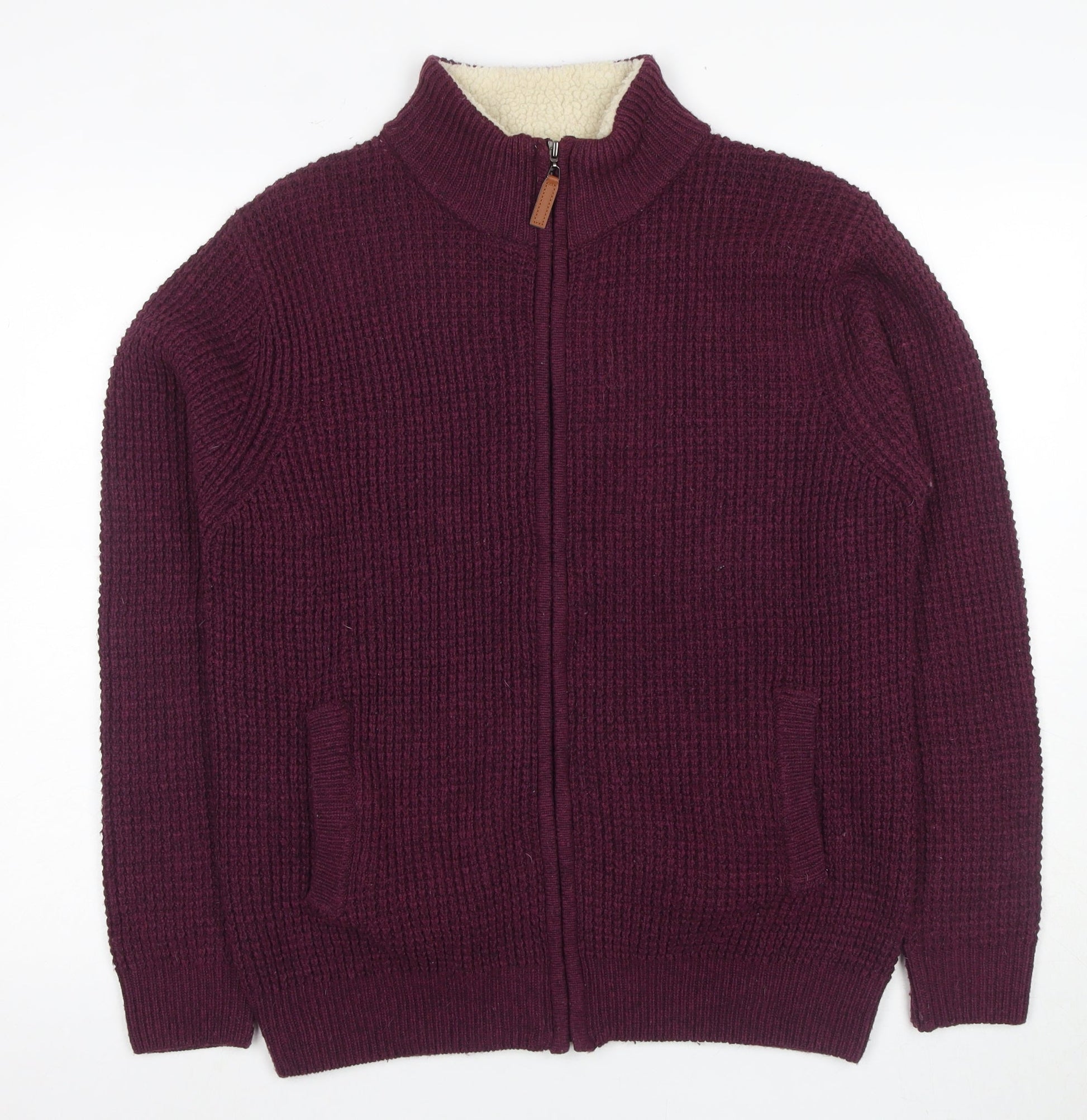 Cotton Traders Men's Purple Full Zip Knit Jumper L