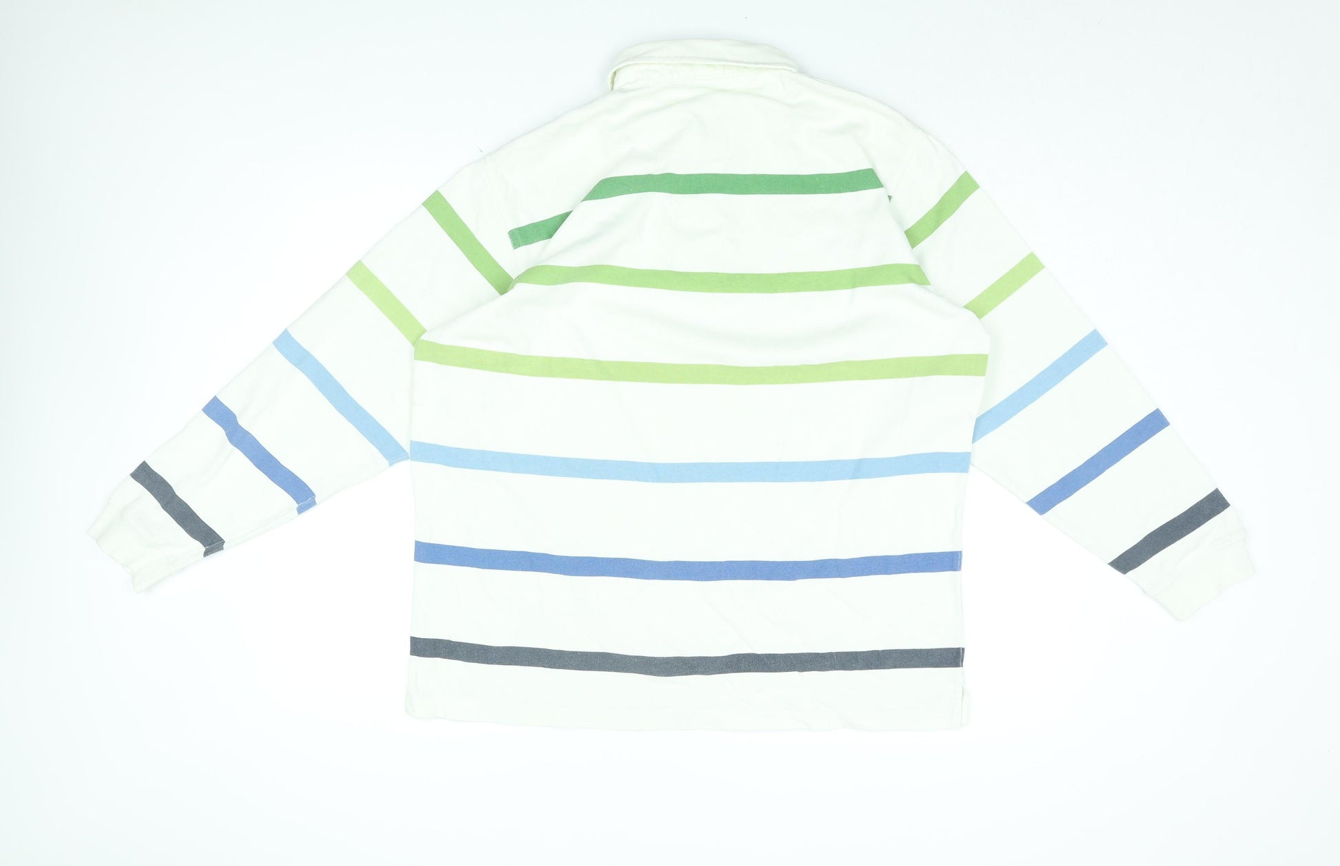Cotton Traders Mens White Striped Cotton Polo Size L Collared Button
