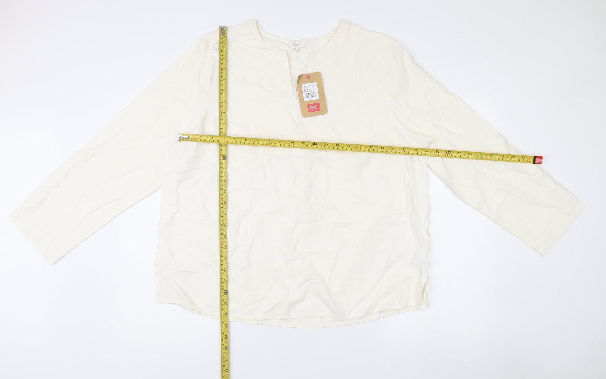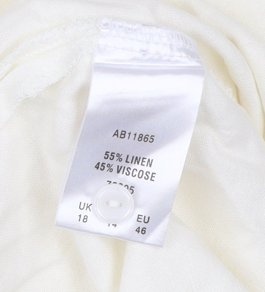 Cotton Traders Women Ivory Linen Blend Tunic Blouse Size 18