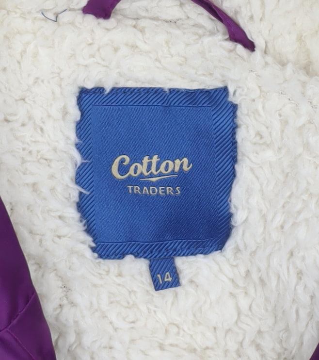 Cotton Traders Women Purple Hooded Parka Jacket Size 14 Polyester Lined