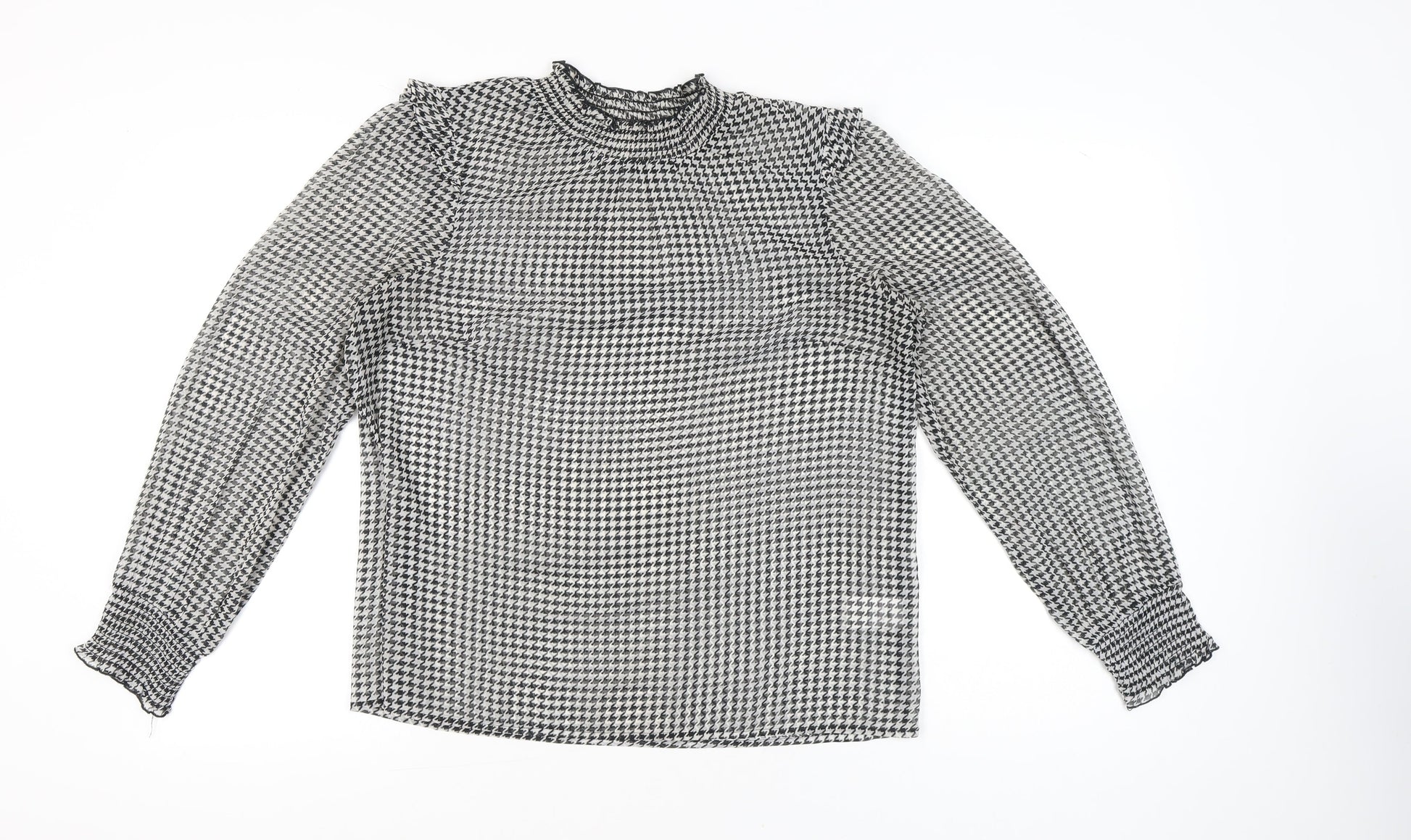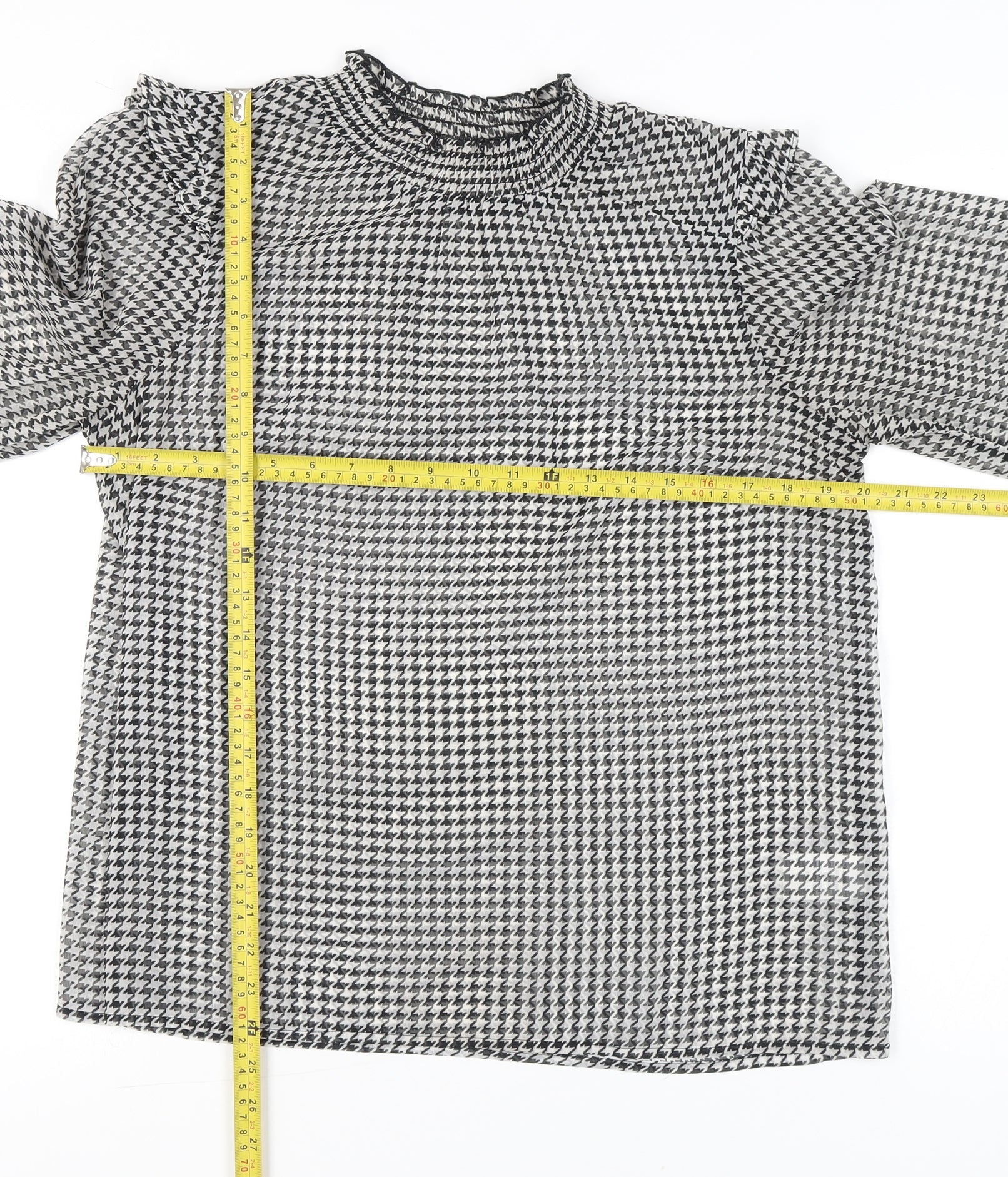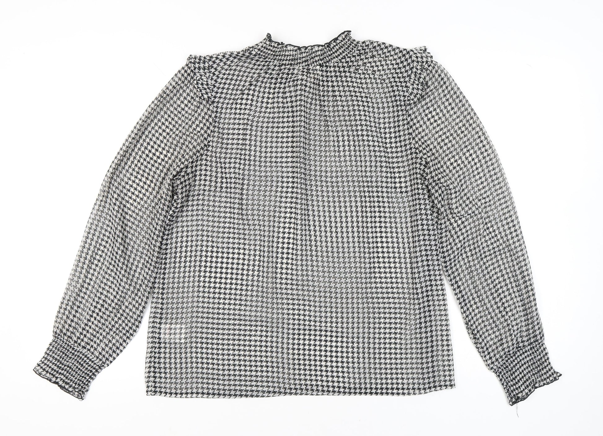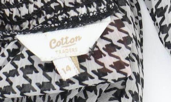 Cotton Traders Women’s Black Houndstooth Blouse UK 14 Long Sleeve Tunic