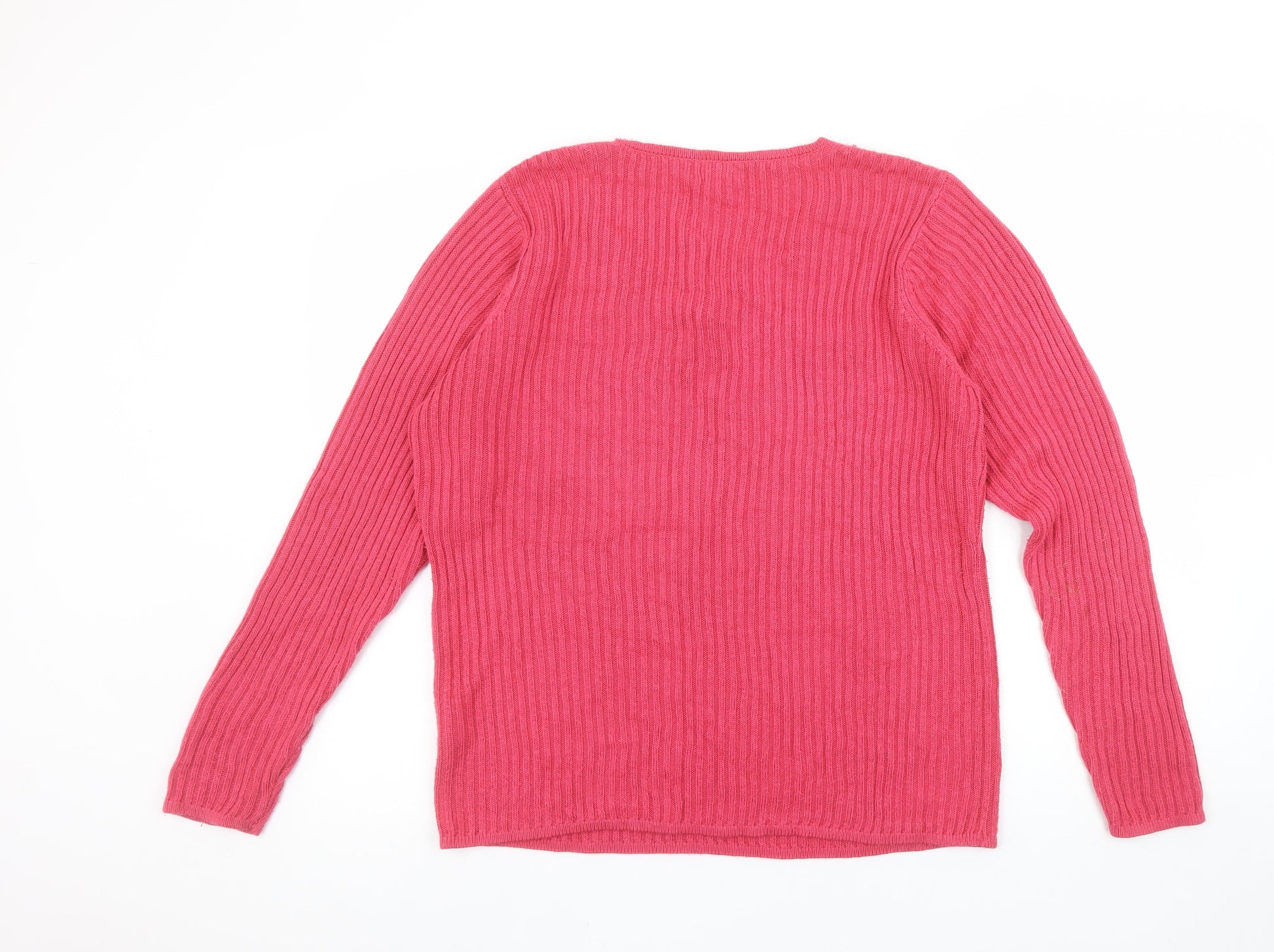 Cotton Traders Women’s Pink Crochet Neck Long Sleeve Knit Jumper Size 10/12