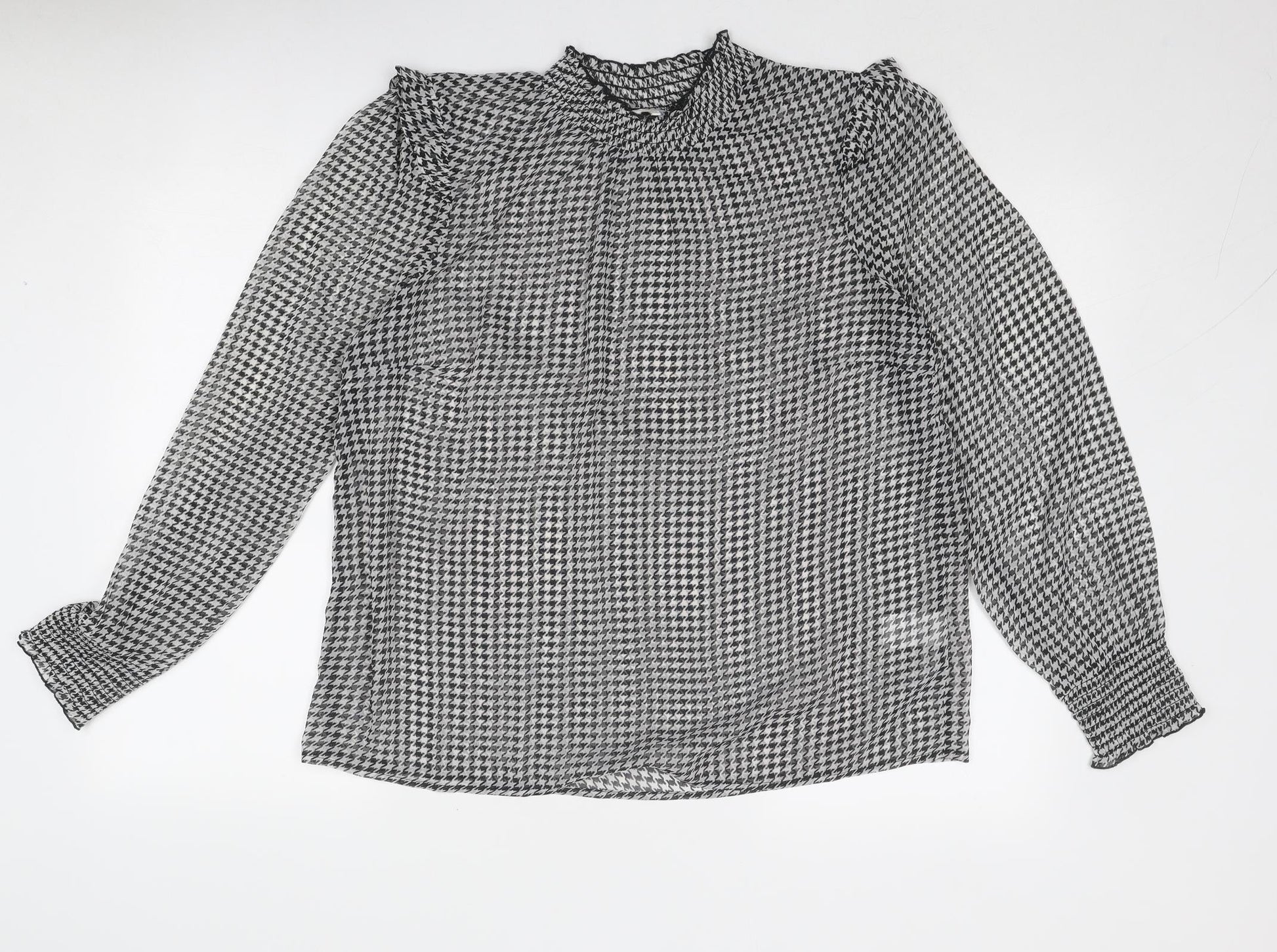 Cotton Traders Womens Black Geometric Polyester Basic Blouse Size 14 Mock Neck