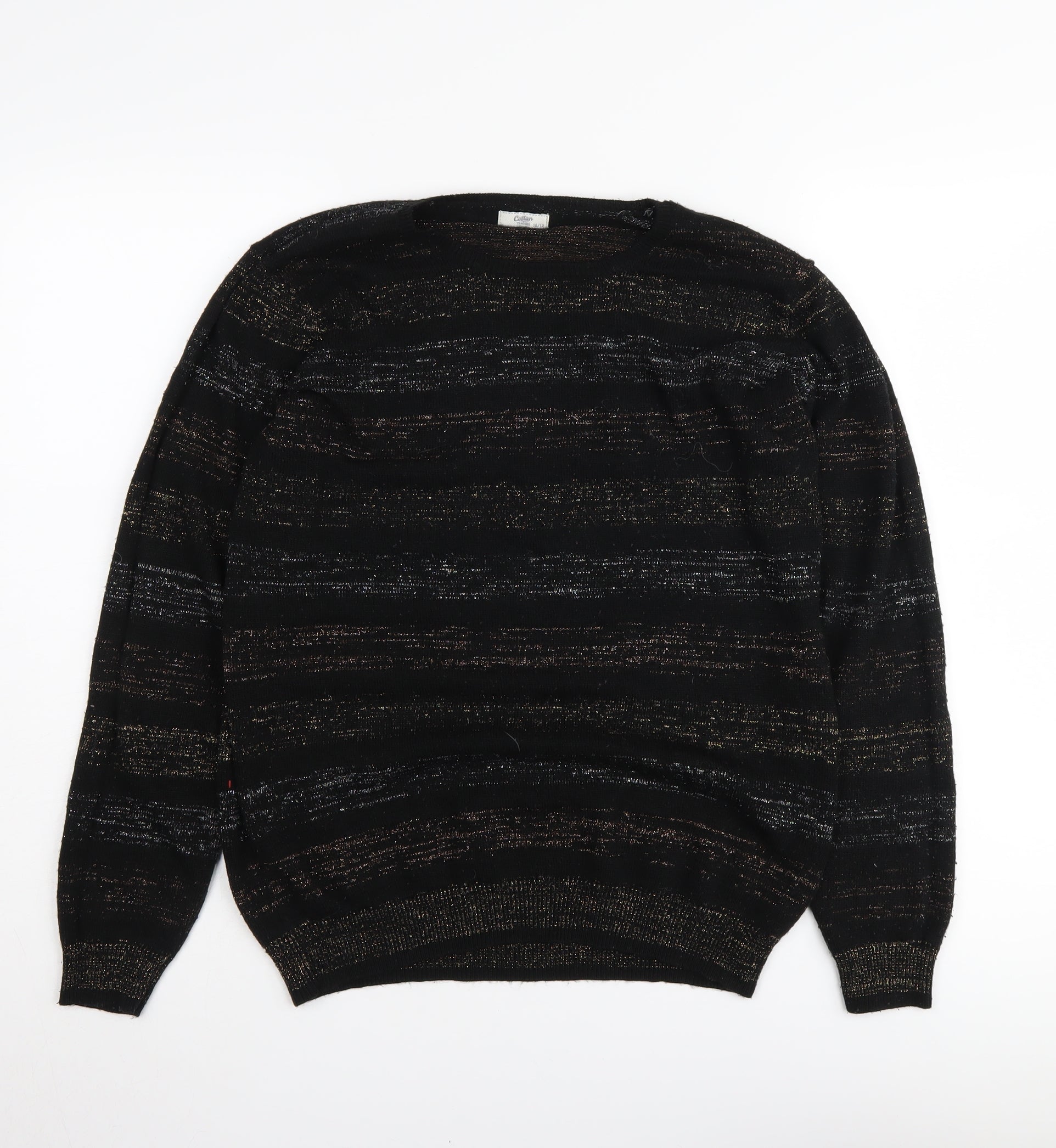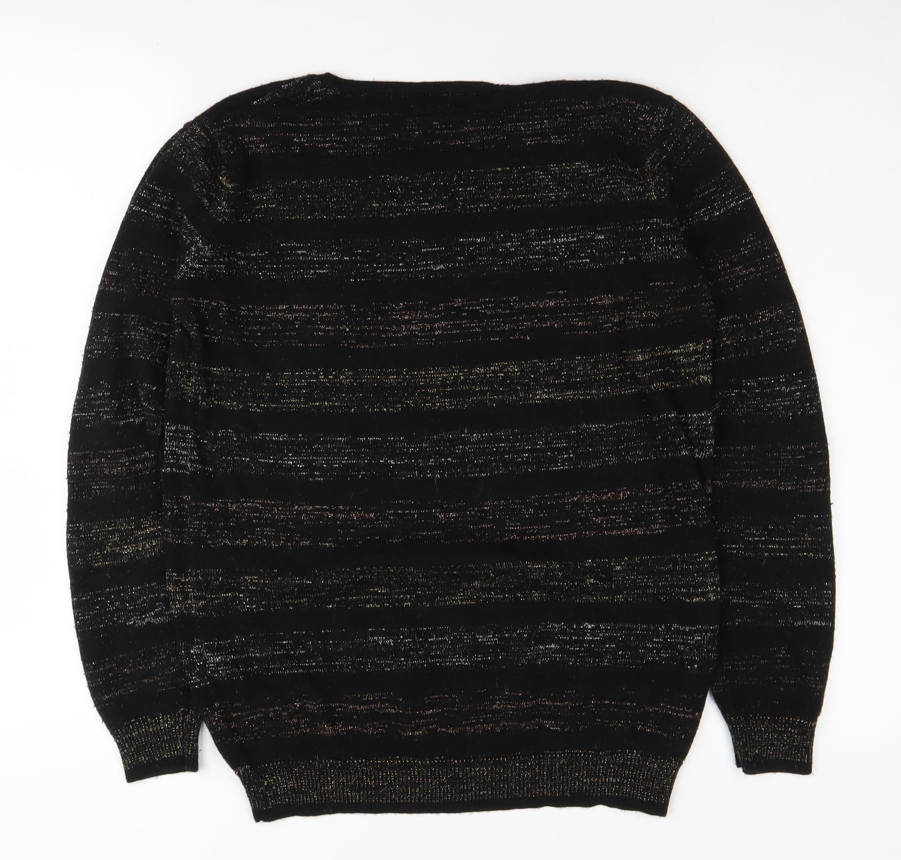 Cotton Traders Women's Black Striped Jumper - Size 10/12