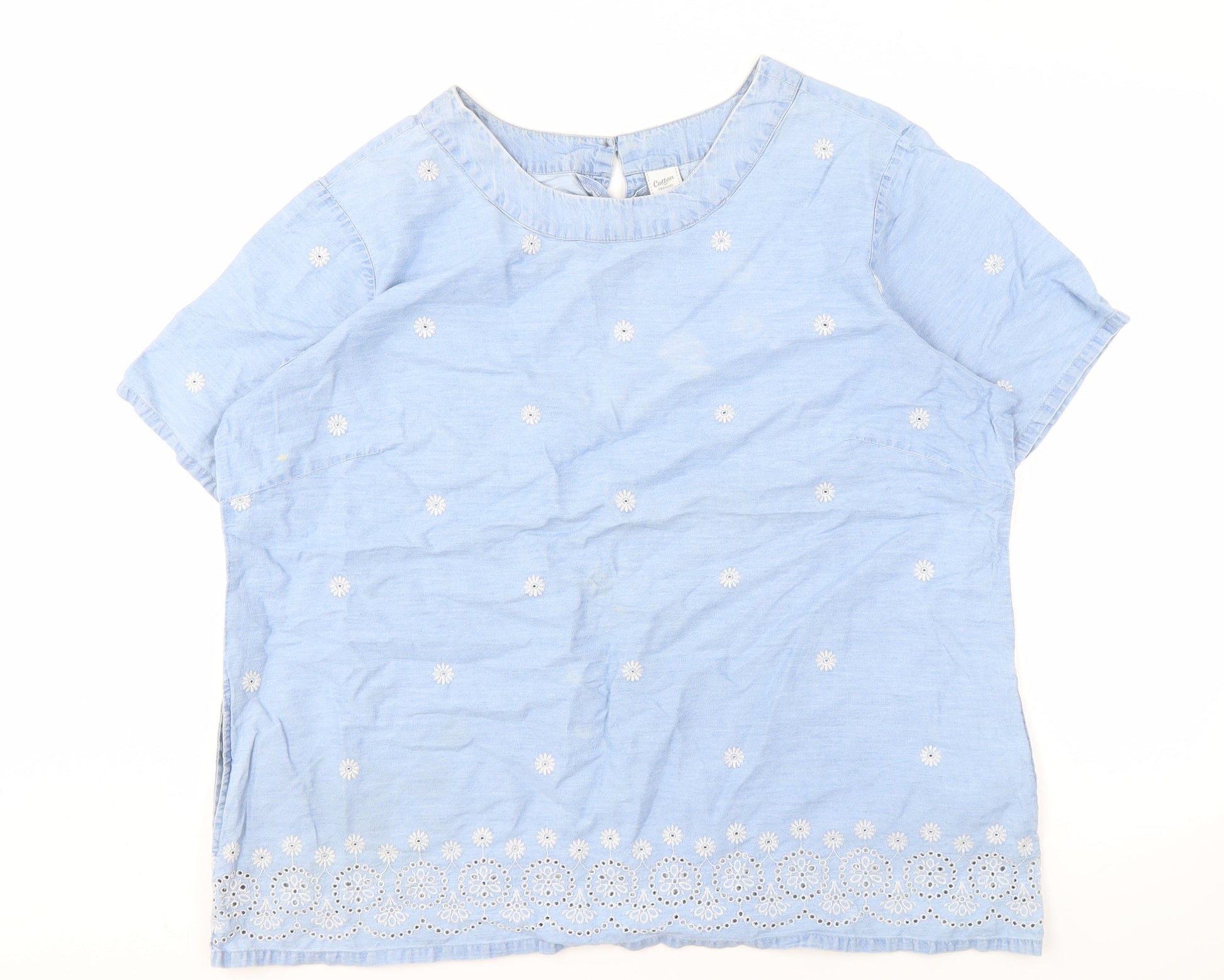 Cotton Traders Women's Blue Embroidered Blouse Size 22