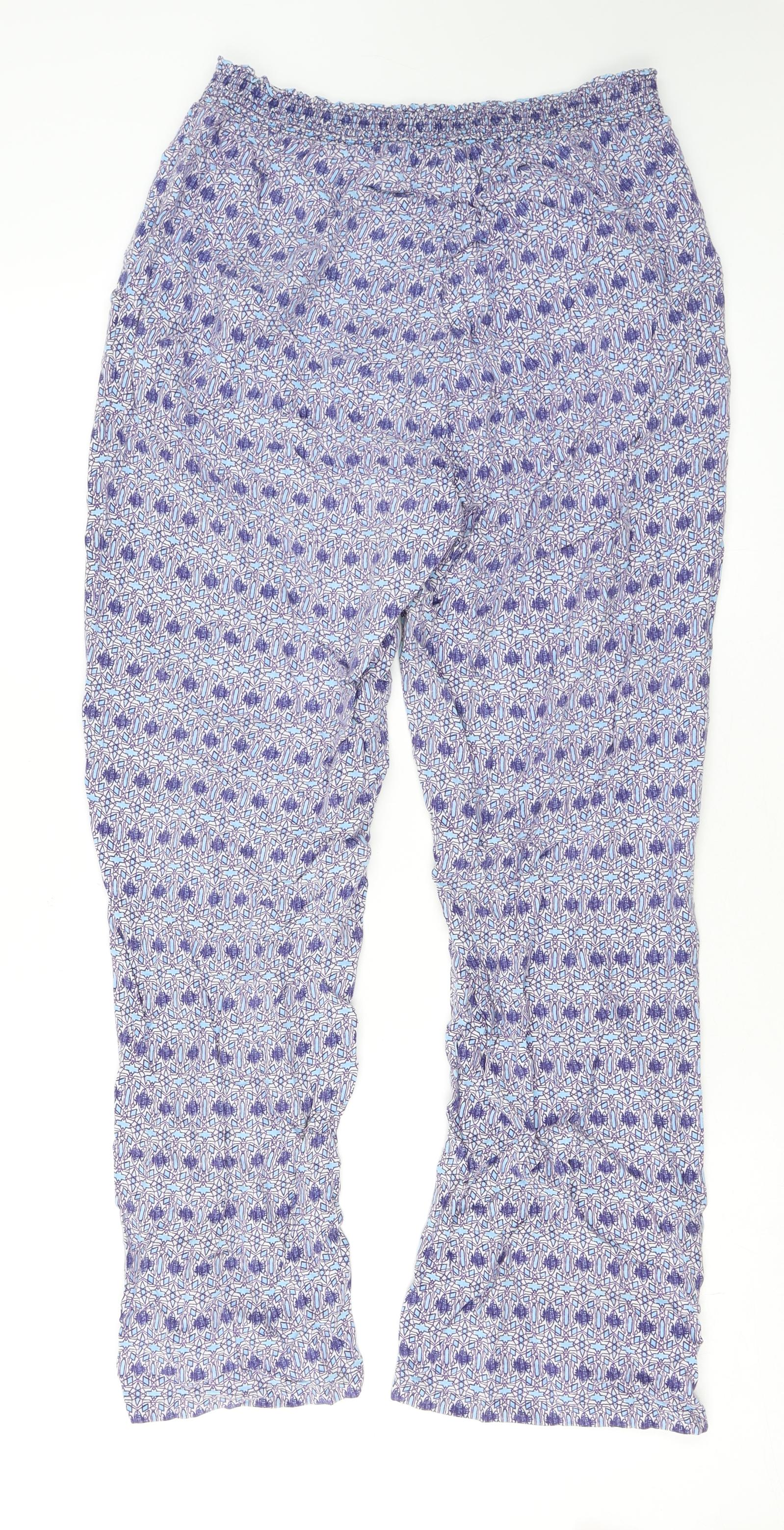 Cotton Traders Womens Blue Geometric Viscose Trousers Size 14 L25 in Regular