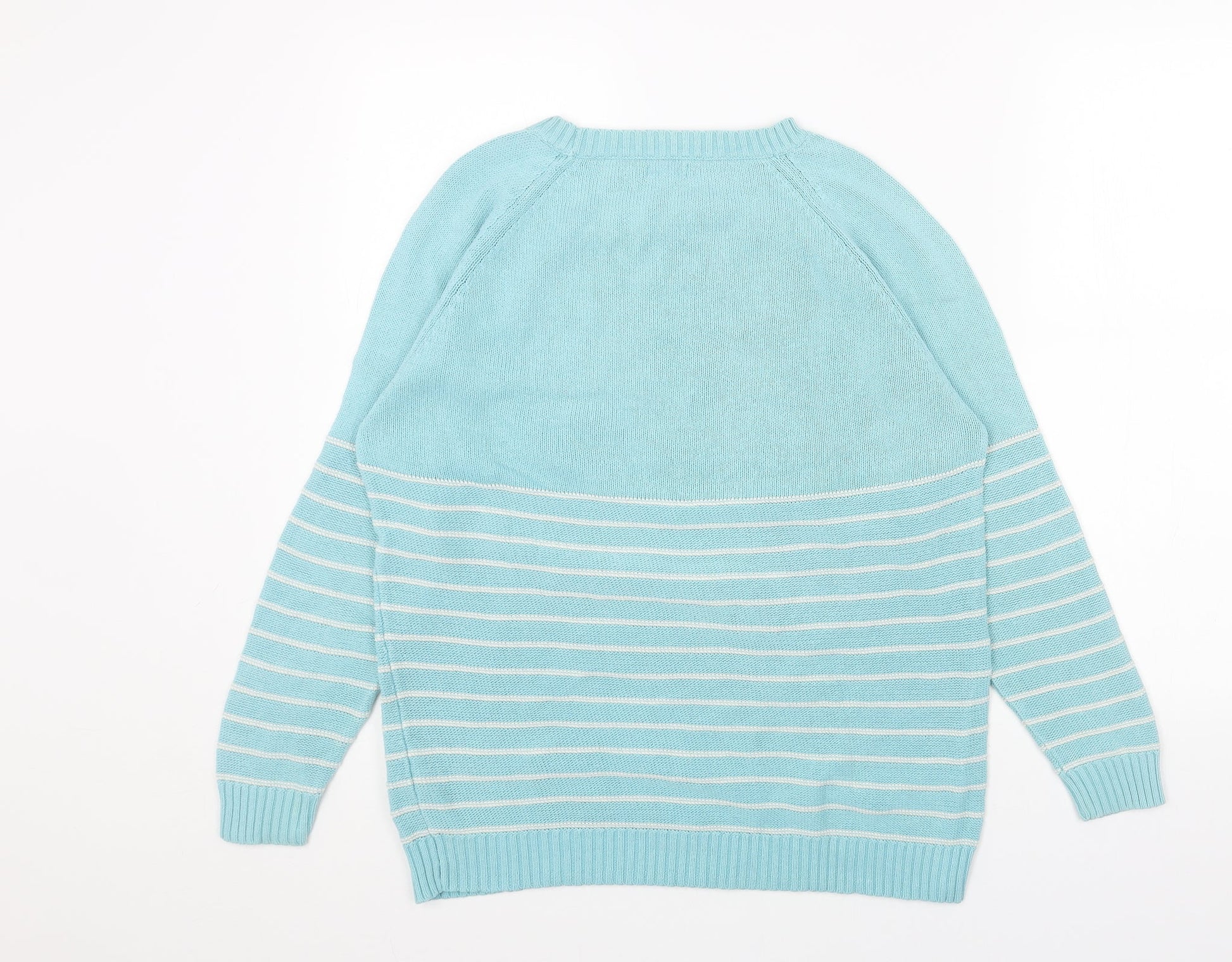 Cotton Traders Womens Blue Round Neck Striped Cotton Pullover Jumper Size 10 - Flower Pattern Size 10-12