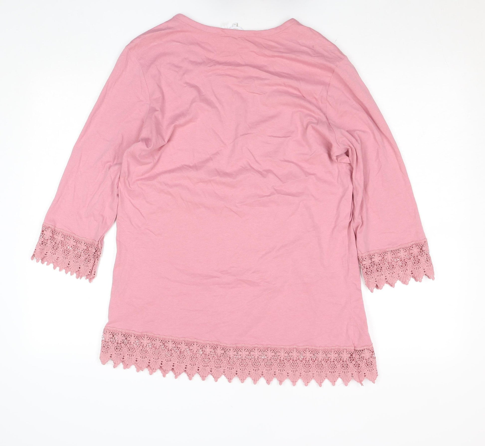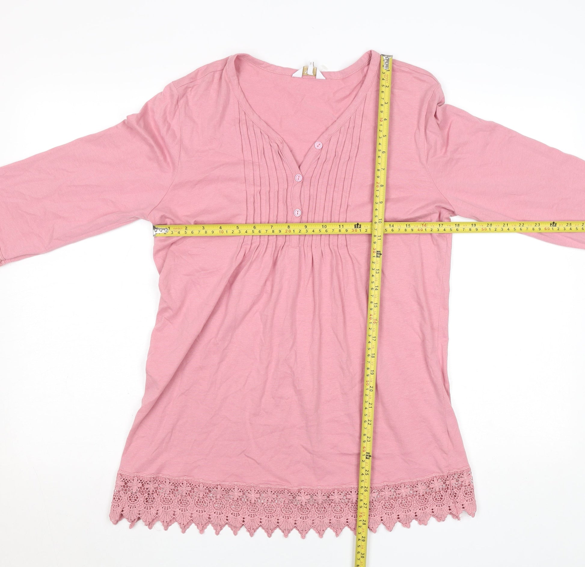 Cotton Traders Womens Dusky Pink 3/4 Sleeve Lace Hem Tunic Blouse Size 10