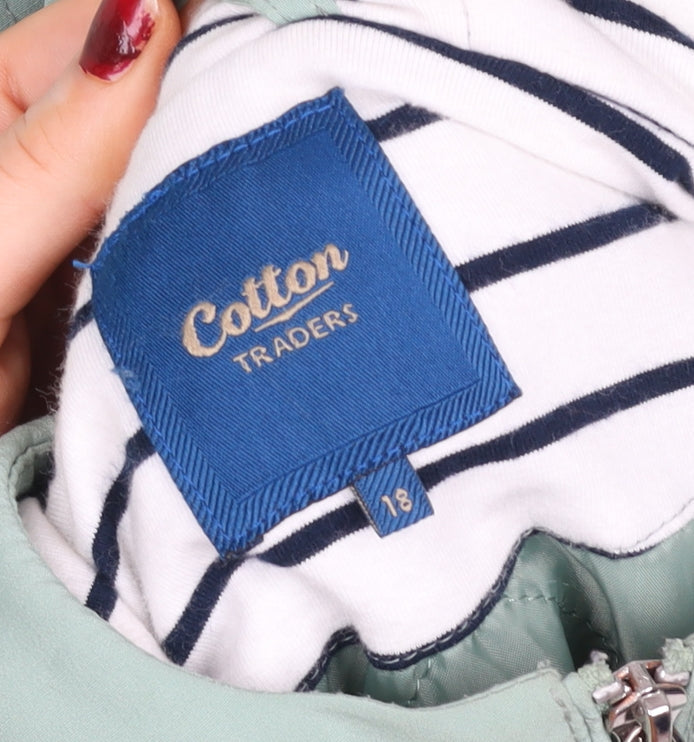 Cotton Traders Womens Green Hooded Rain Coat Jacket Size 18