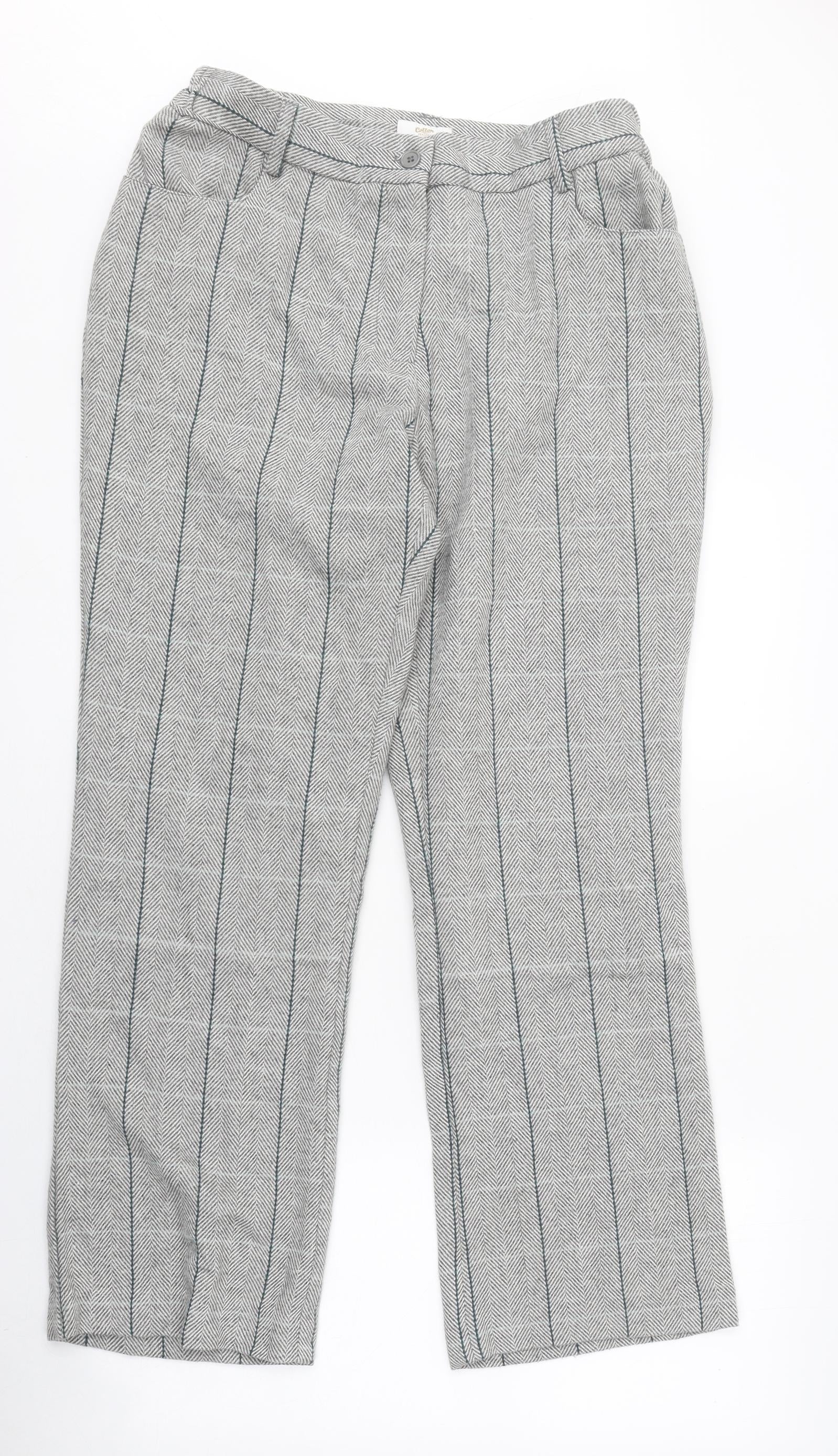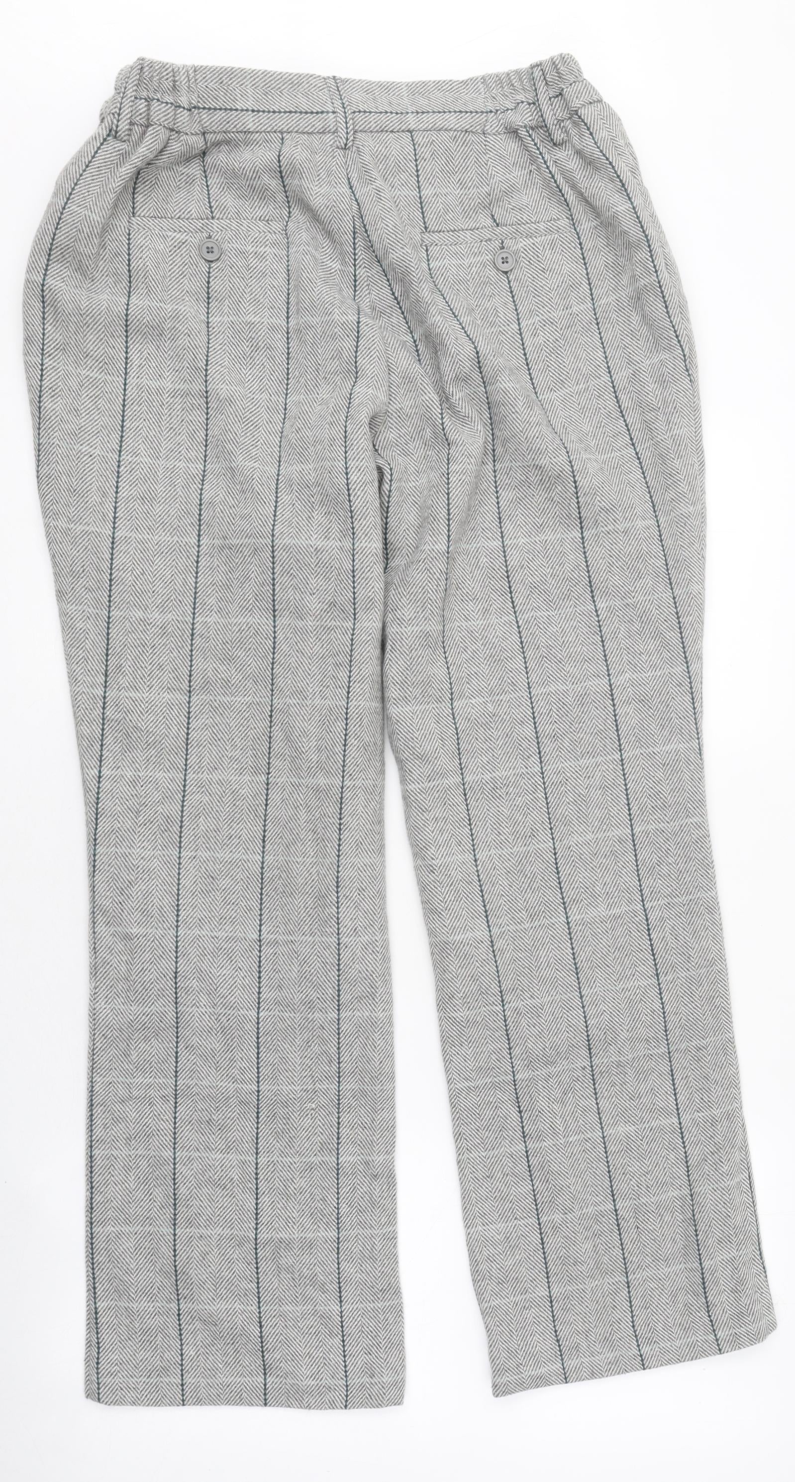 Cotton Traders Womens Grey Check Polyester Trousers Size 12 L28 in Regular Zip