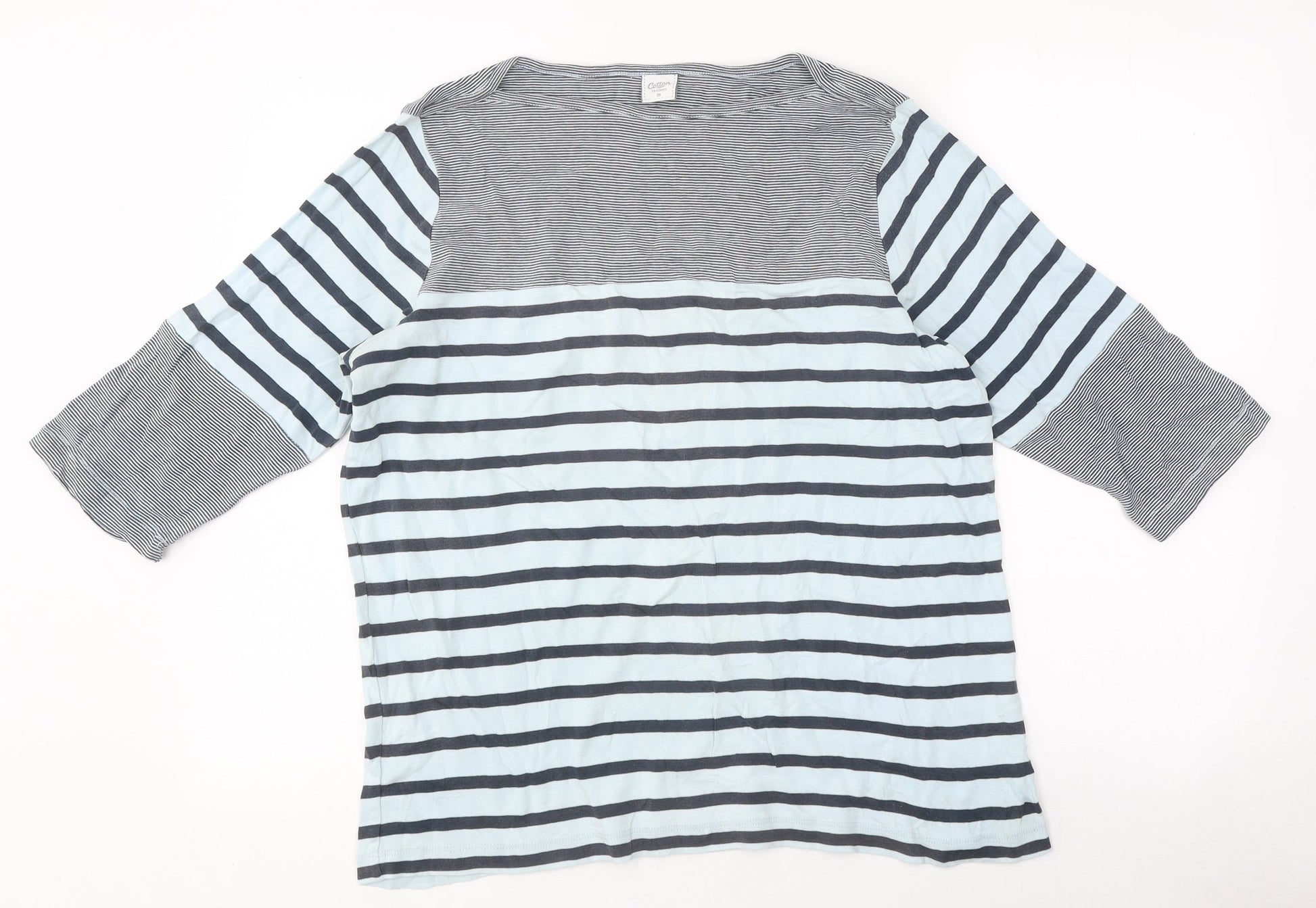 Cotton Traders Womens Multicoloured Striped Cotton Basic T-Shirt Size 16 Round Neck