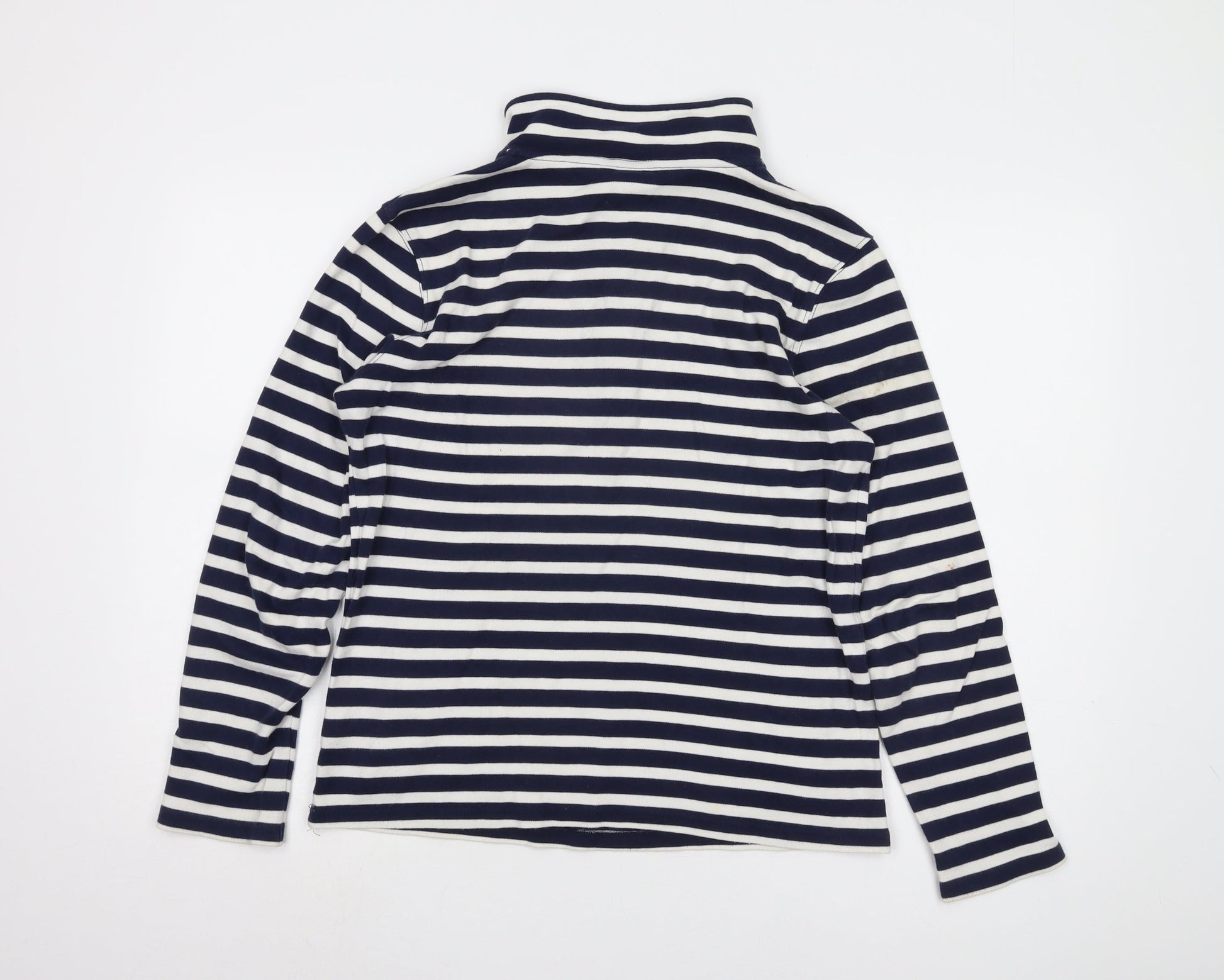 Cotton Traders Women's Navy Blue Striped Long T-Shirt