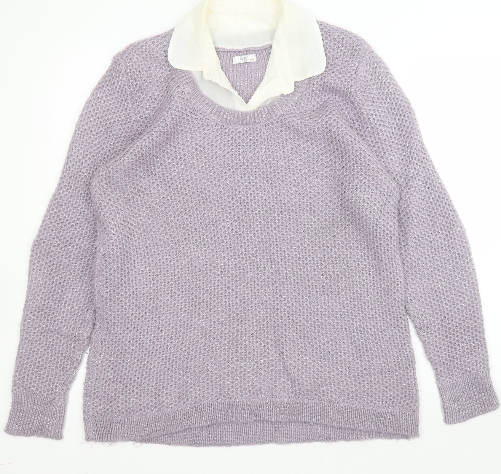 Cotton Traders Womens Purple Collared Acrylic Henley Jumper Size 14