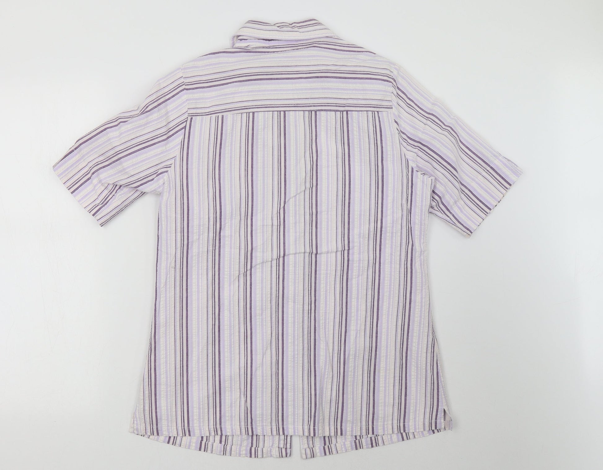 Cotton Traders Womens Purple Striped Basic Button-Up Size 12