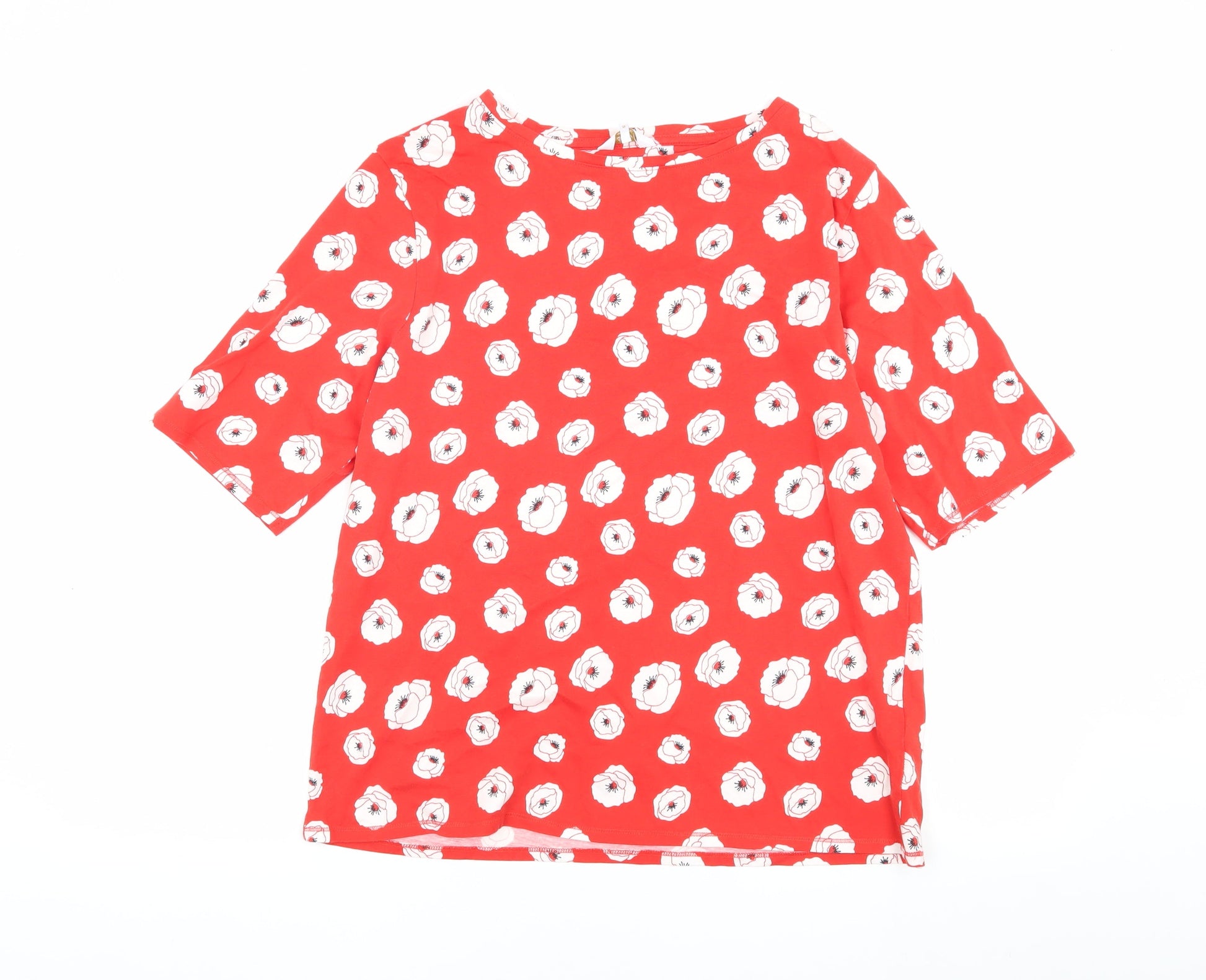 Cotton Traders Women's Red Floral T-Shirt Size 16
