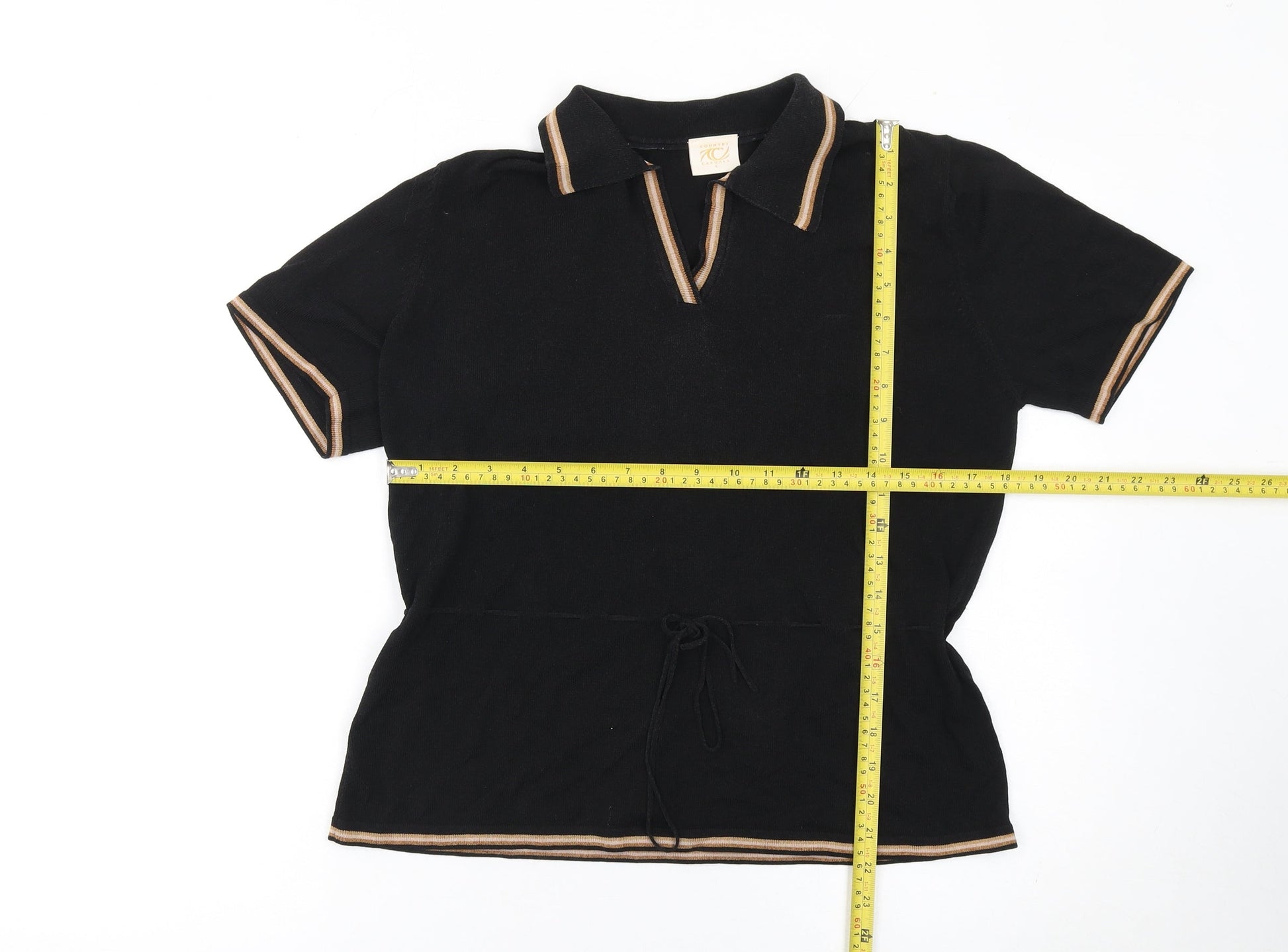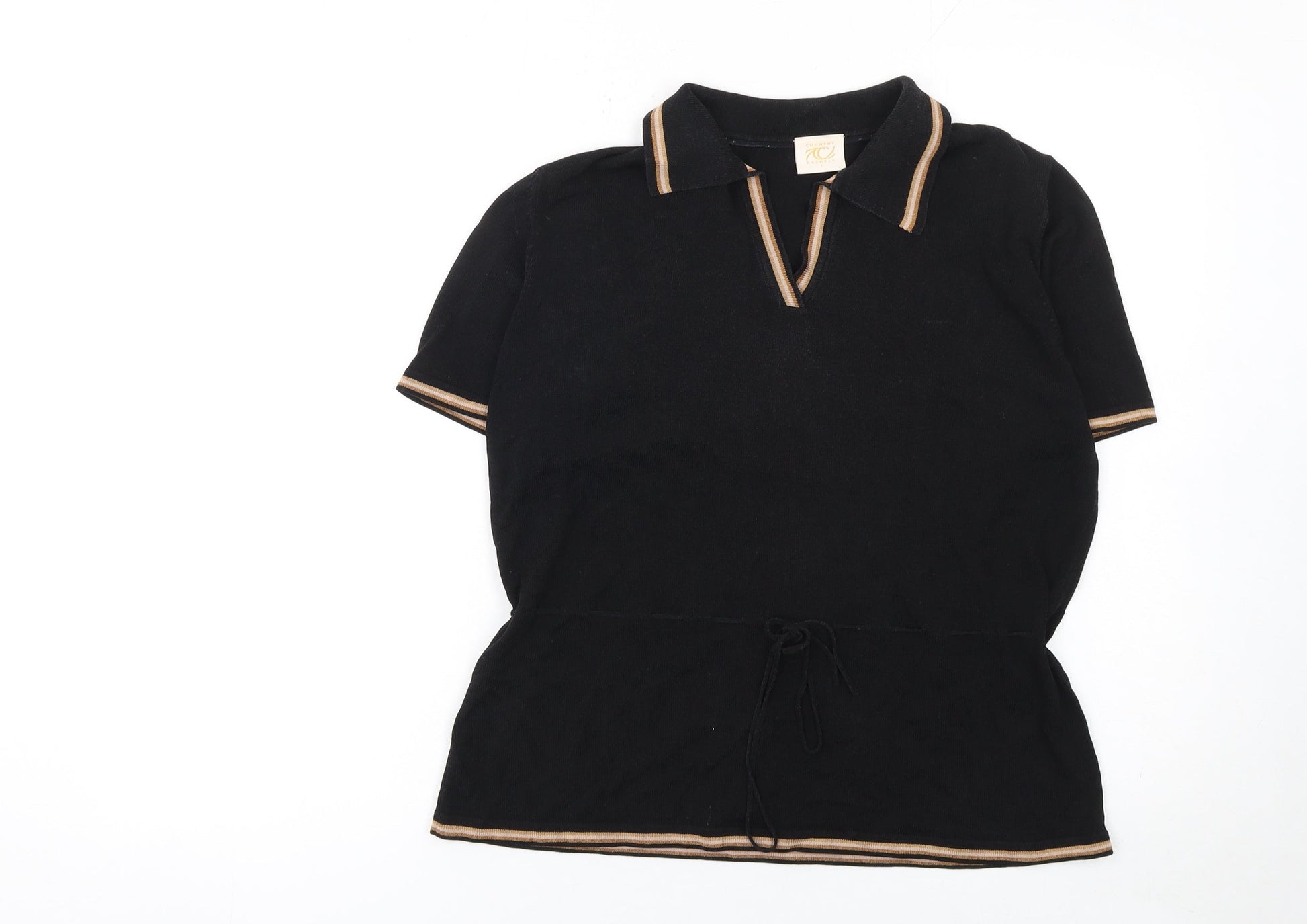 Country Casuals Women’s Black Collared Henley Knit Jumper L