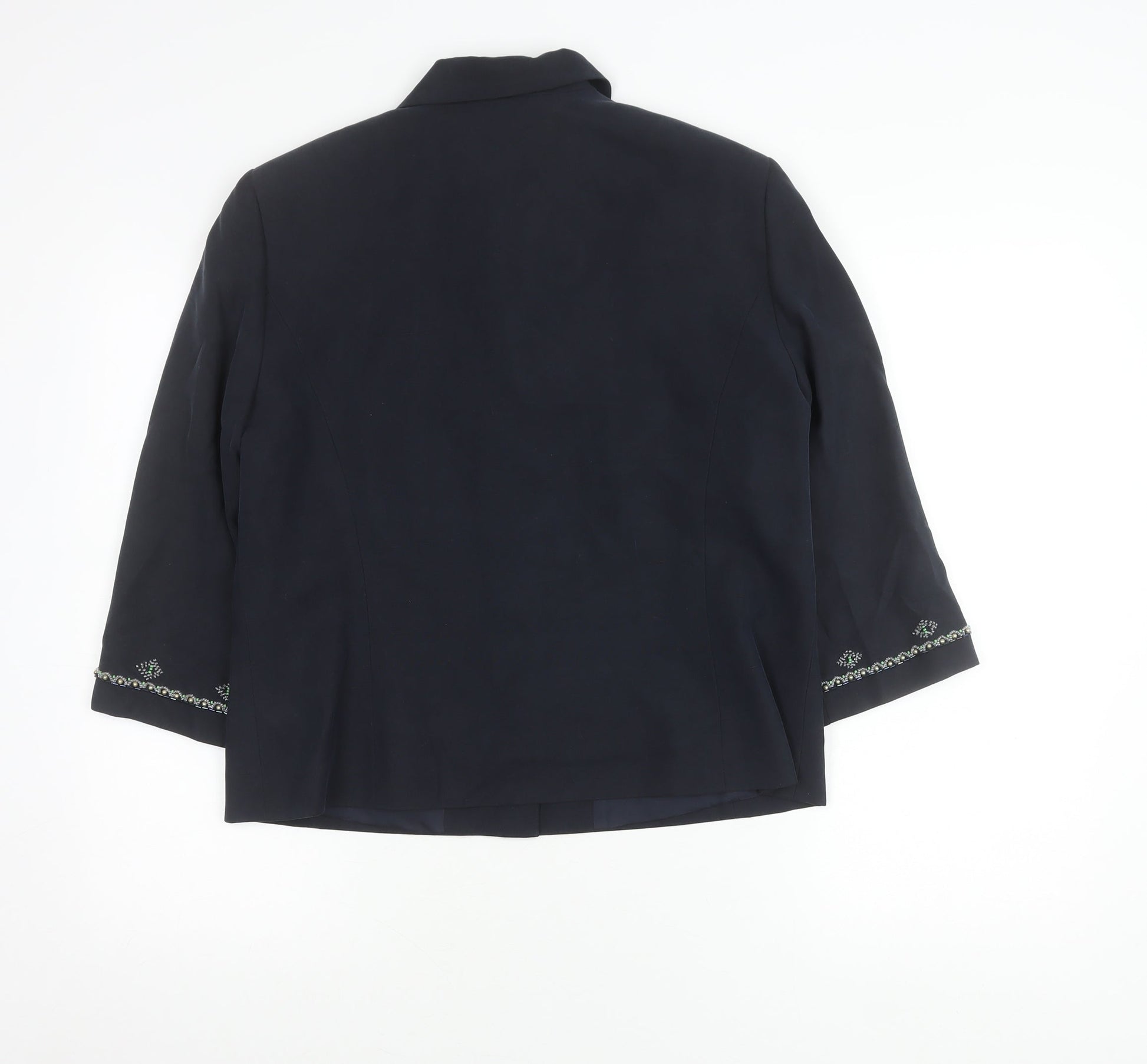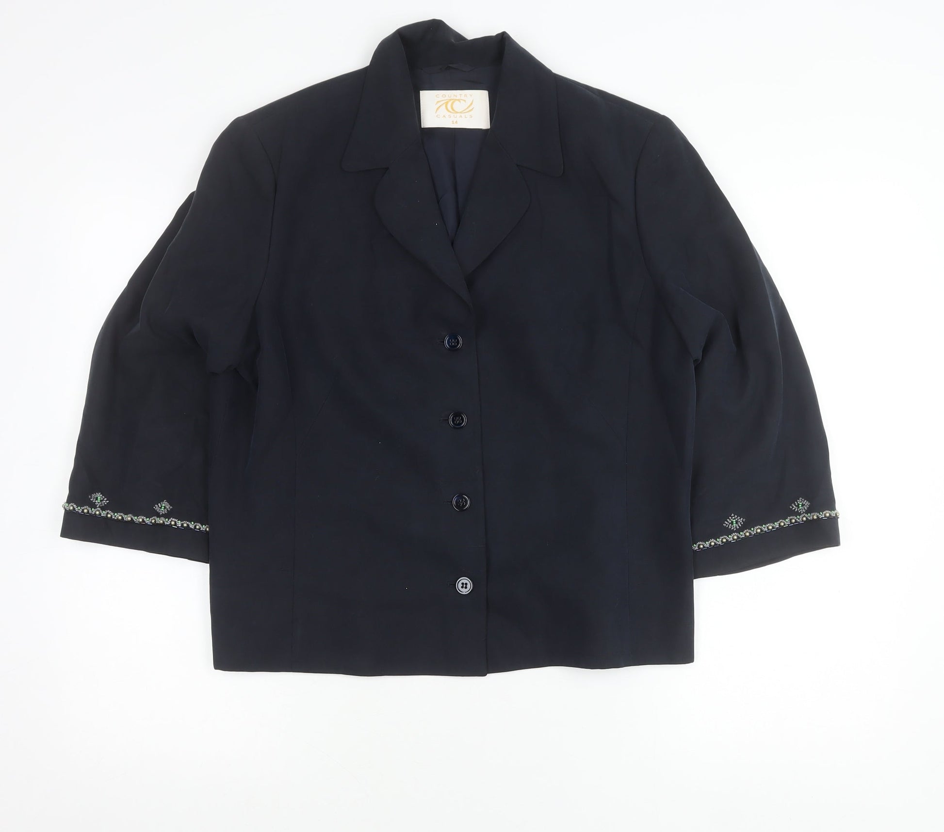 Country Casuals Women’s Blue Silk Suit Jacket Size 14 3/4 Sleeve Formal Blazer