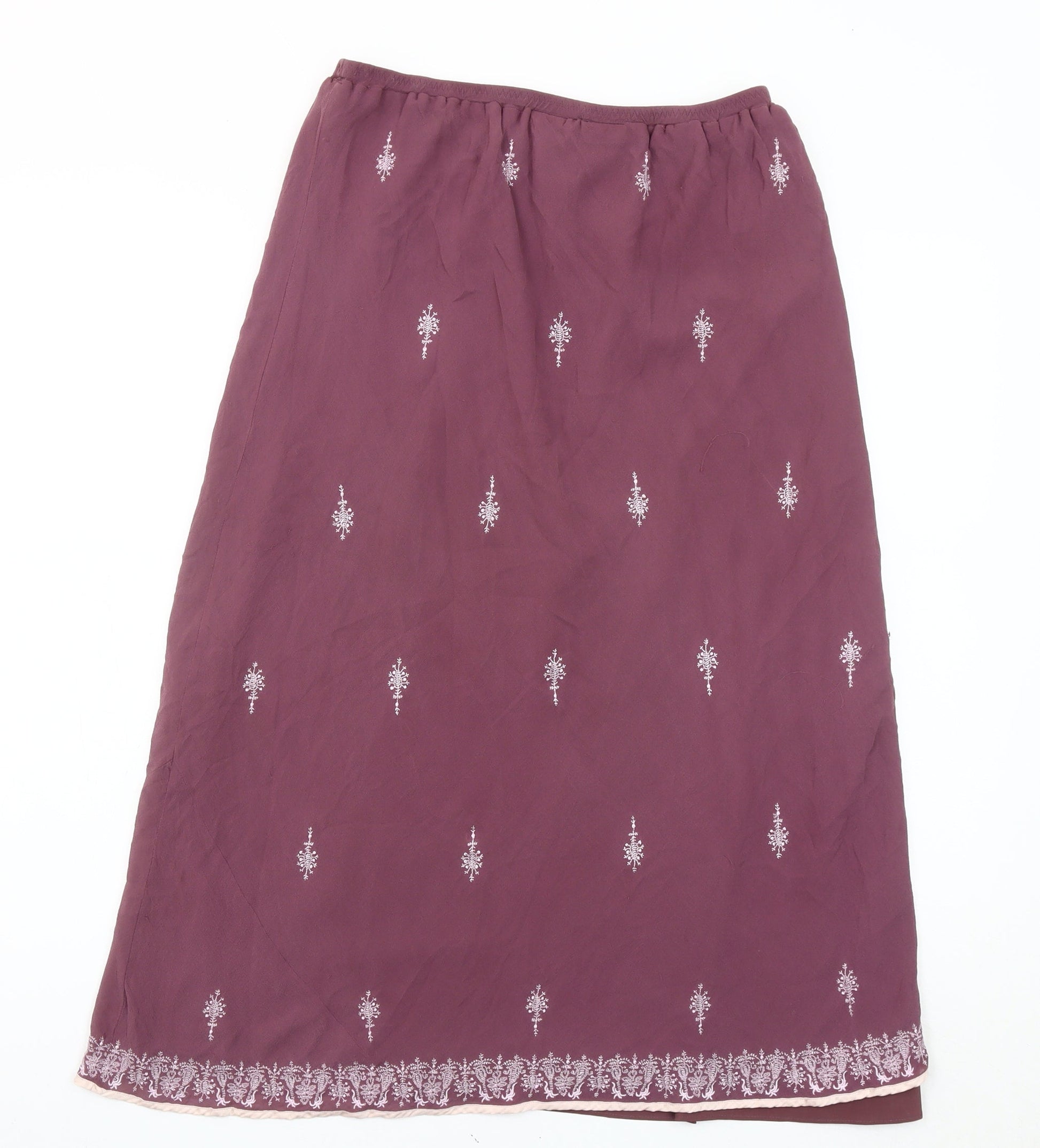 Country Casuals Women’s Purple Silk Embroidered Midi A-Line Skirt M