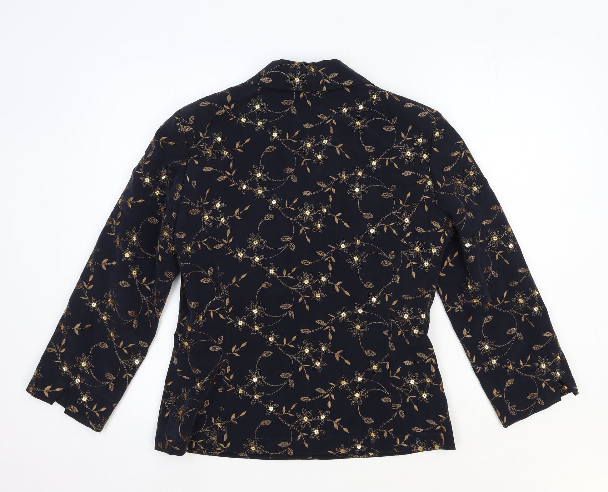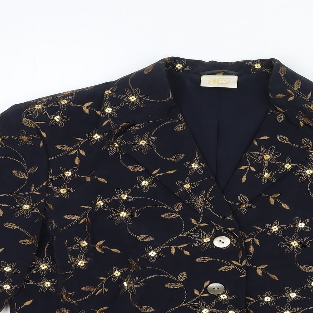 Country Casuals Womens Blue Floral Cupro Jacket Blazer Size 10