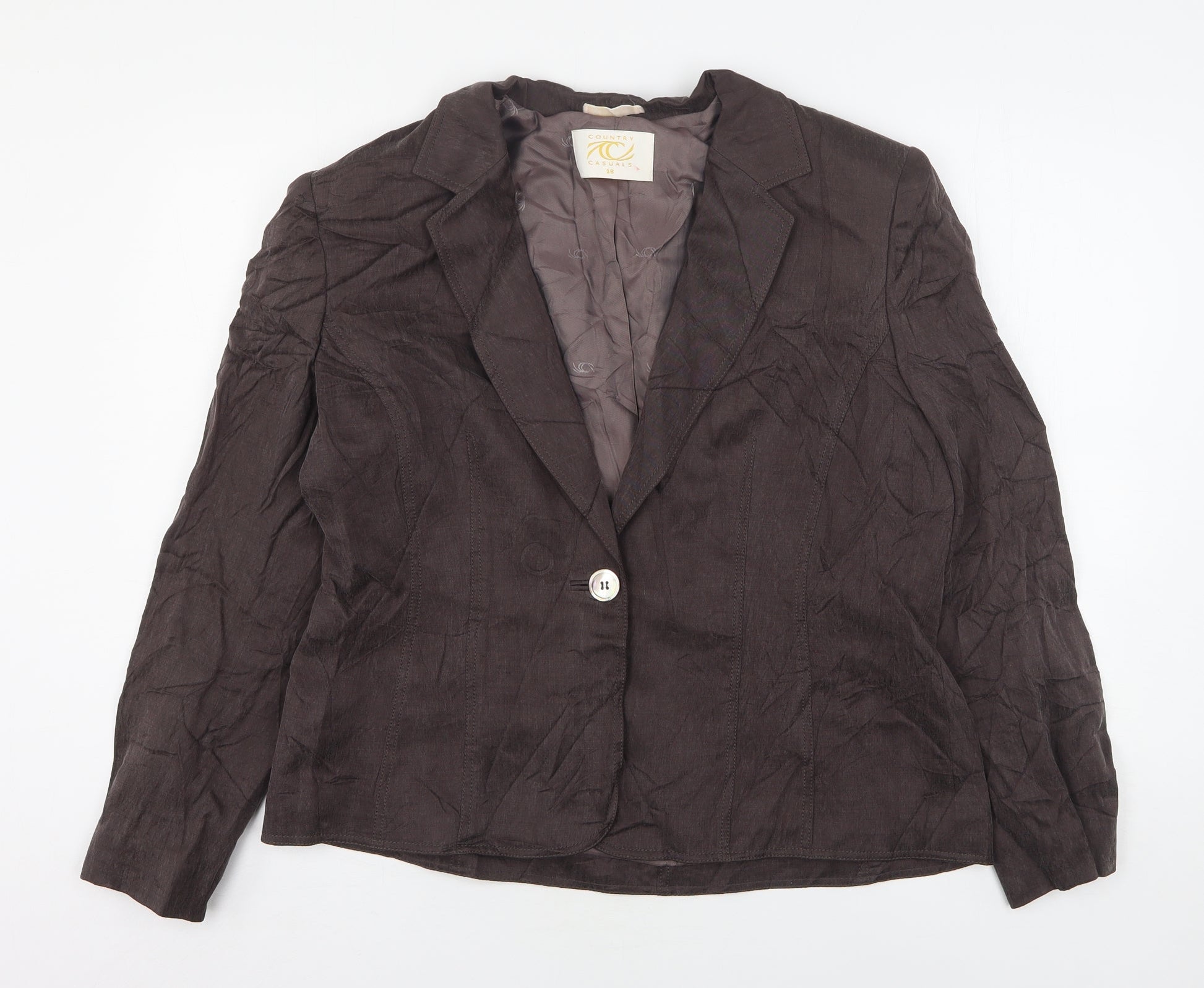 Country Casuals Womens Brown Cupro Jacket Suit Jacket Size 18