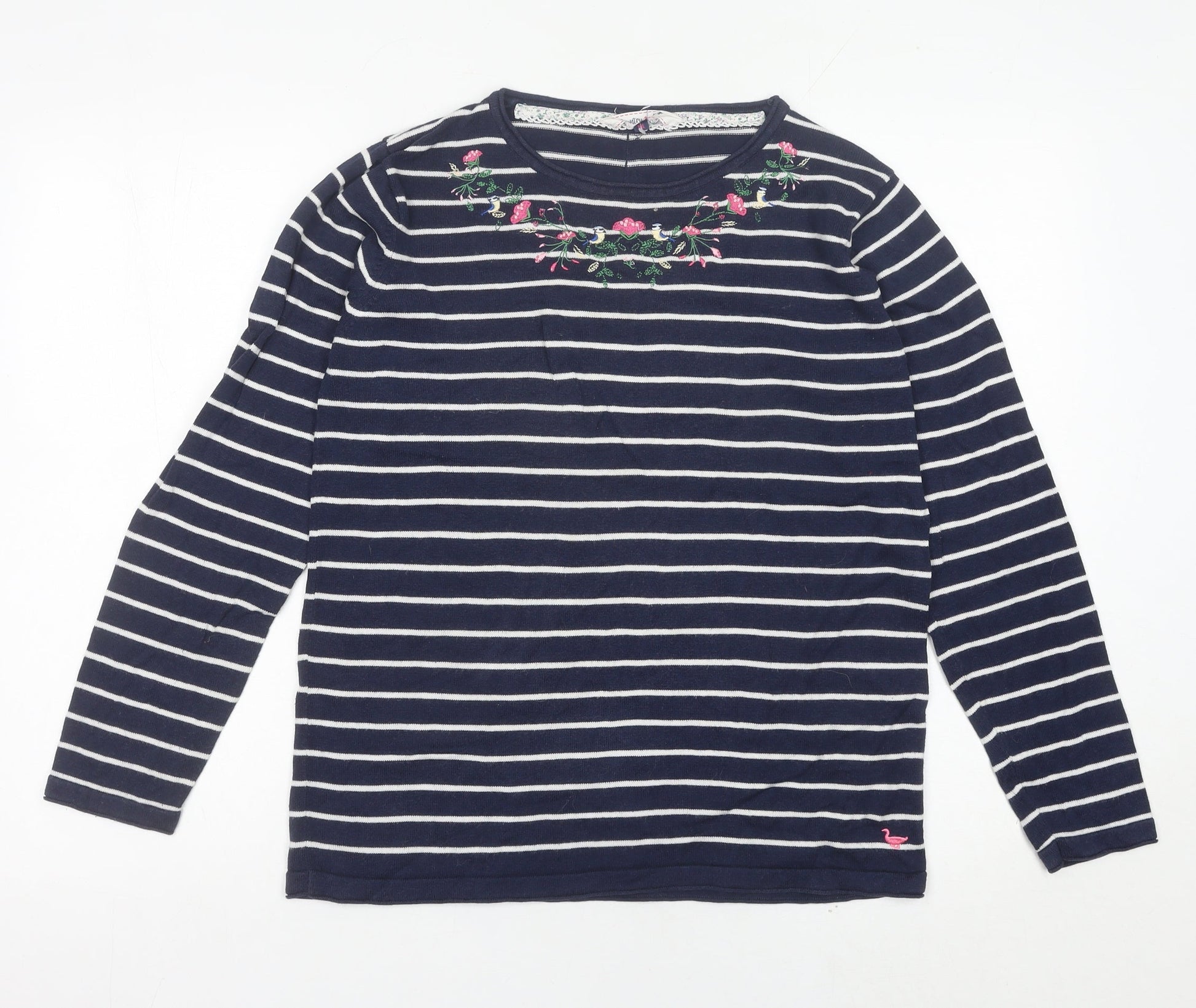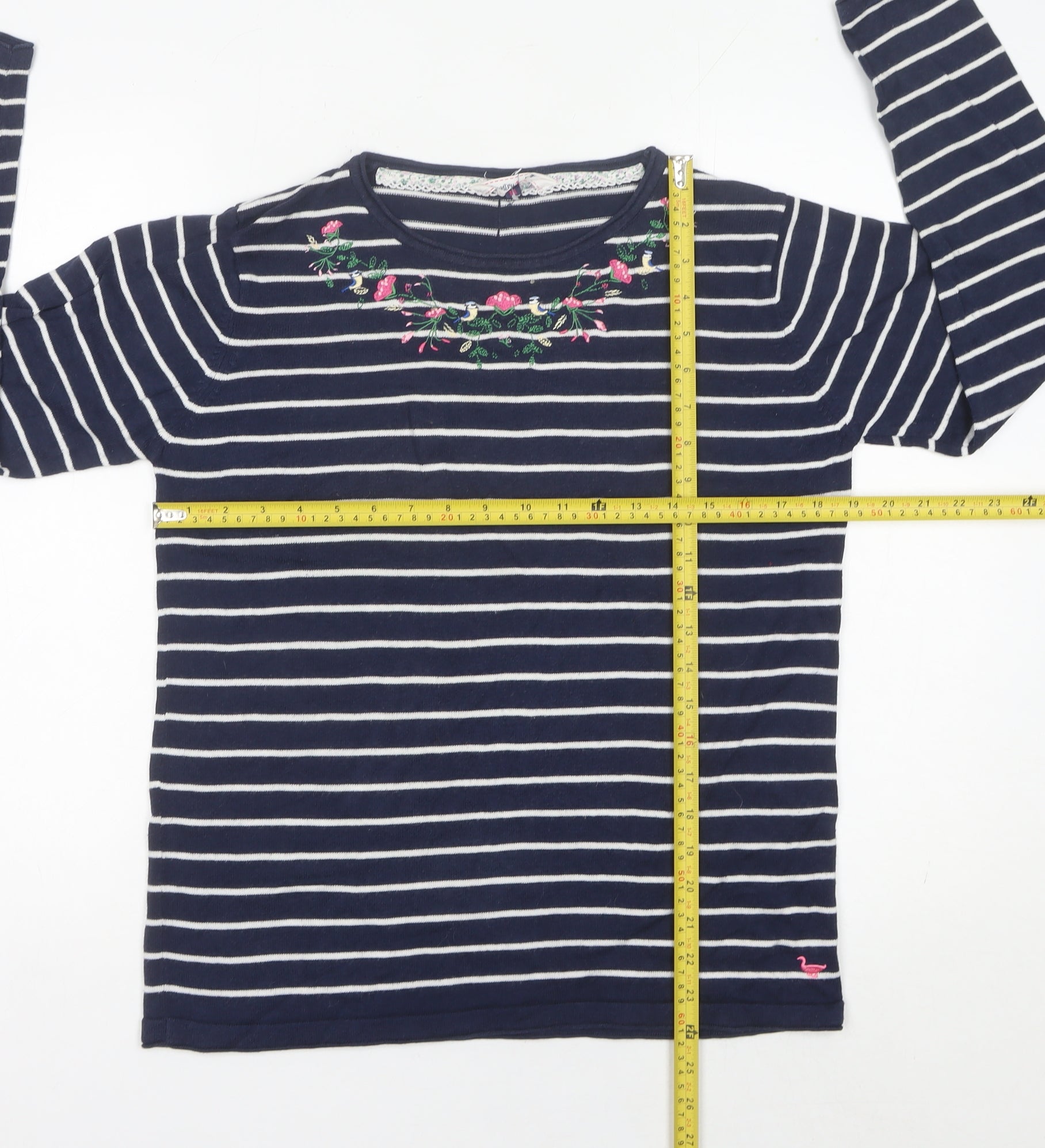 Country Rose Womens Blue Striped Embroidered Pullover Jumper M