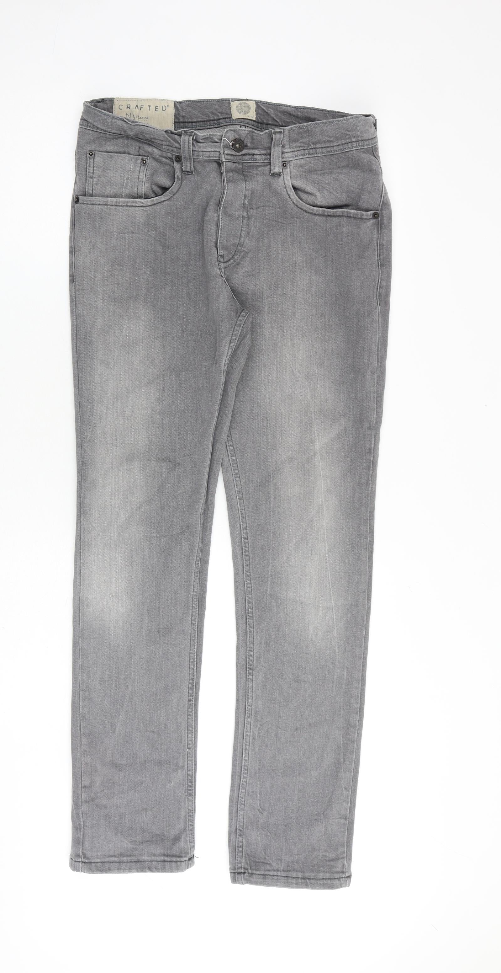 Crafted Mens Grey Cotton Skinny Jeans Size 32 in L30 in Regular Button