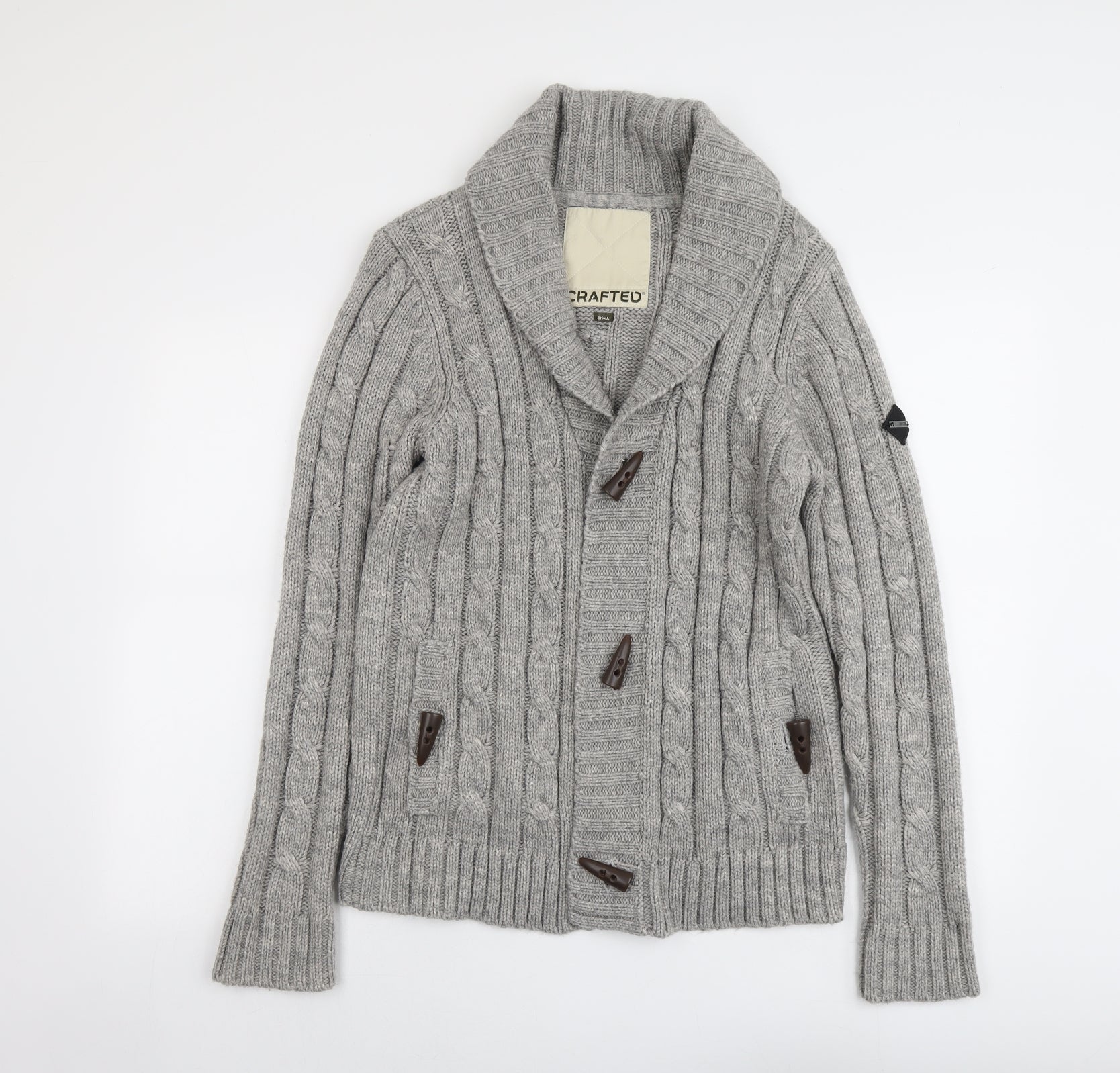 Crafted Womens Grey Collared Acrylic Cardigan Jumper Size S