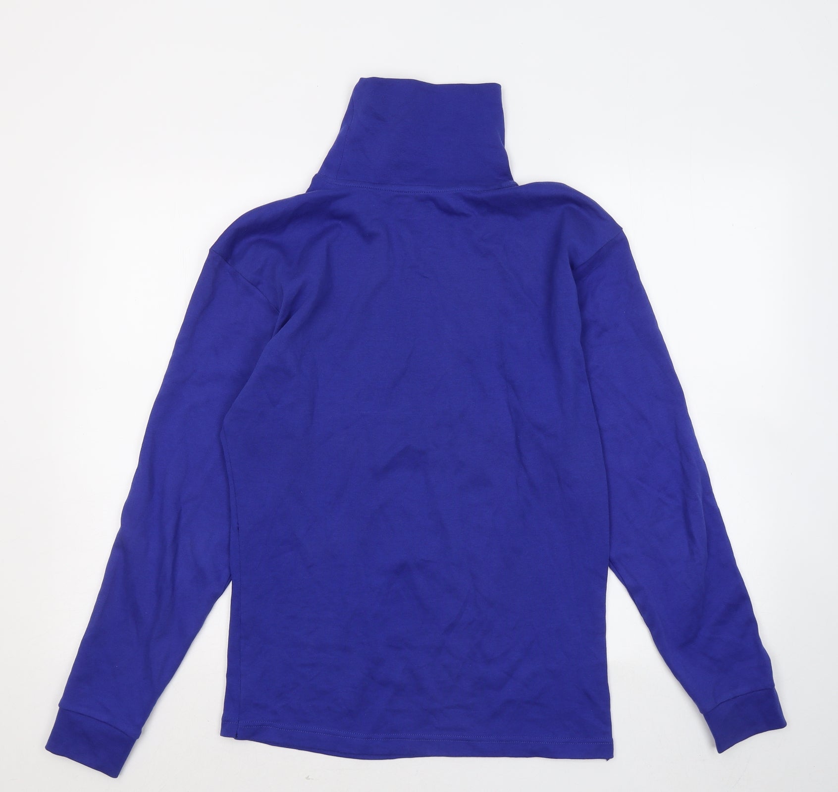 Crane Mens Blue Mock Neck Cotton Pullover Jumper Size M