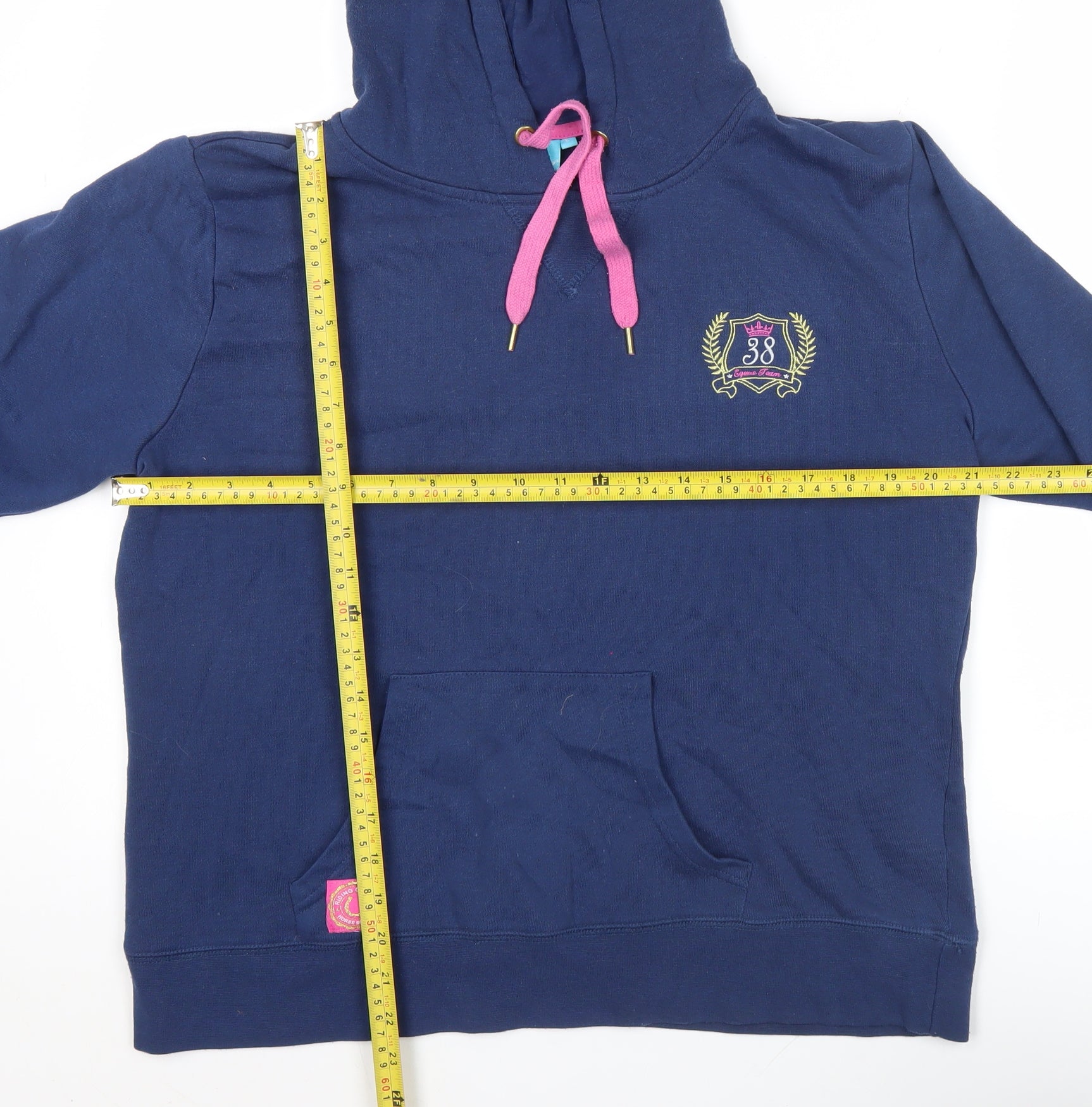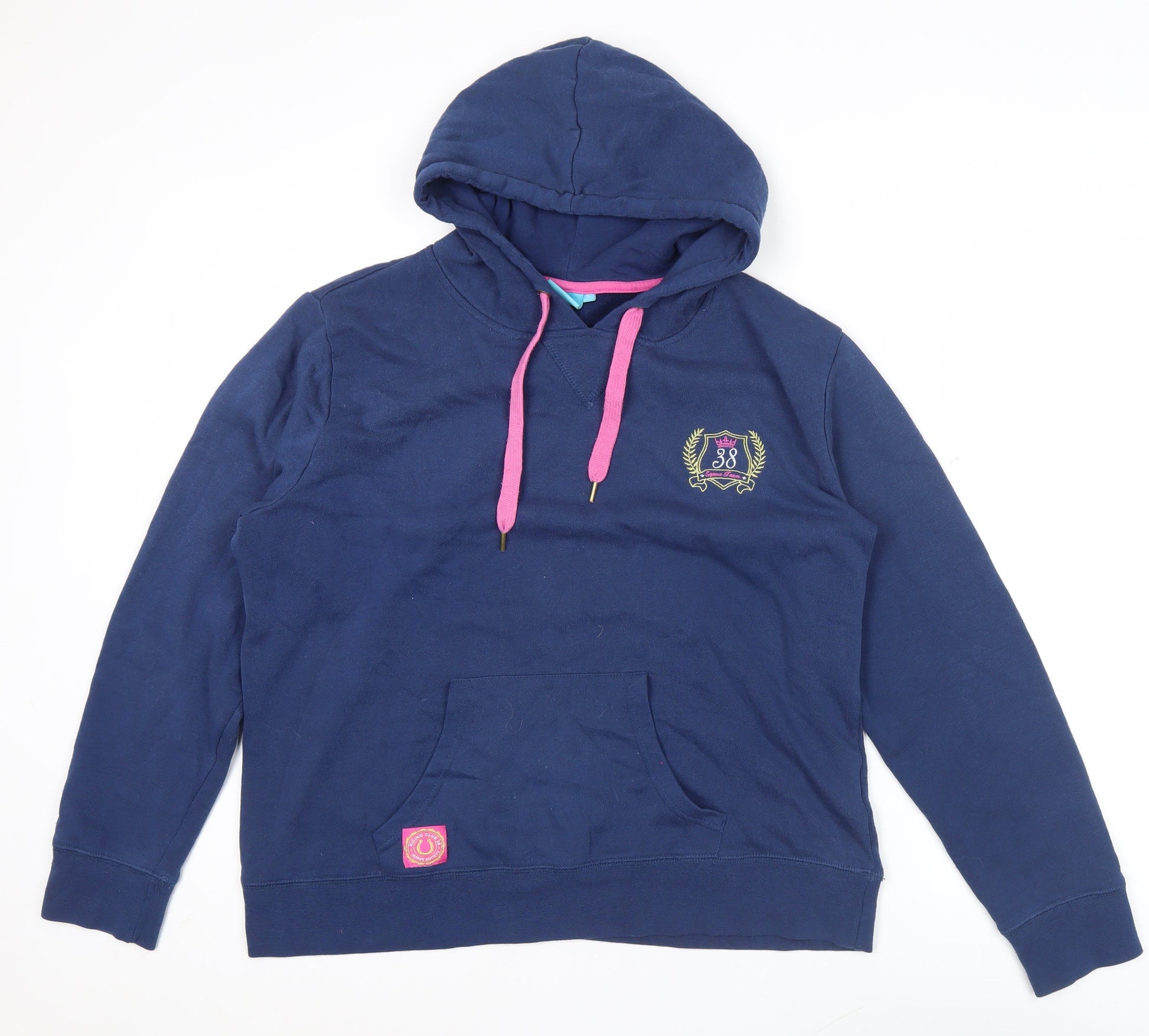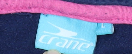 Crane Womens Navy Blue Pullover Hoodie L Embroidered Crest Casual
