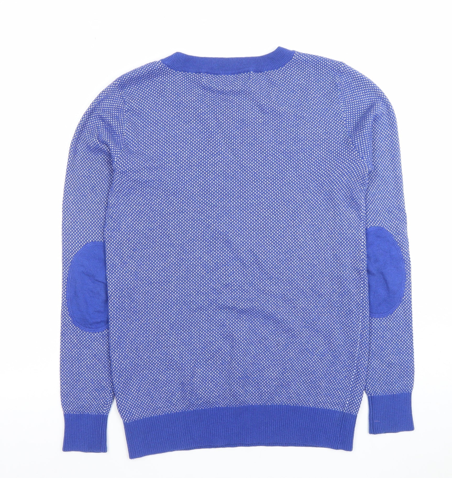 Crew Clothing Co. Women Blue Cotton Blend Crew Neck Jumper Size 10
