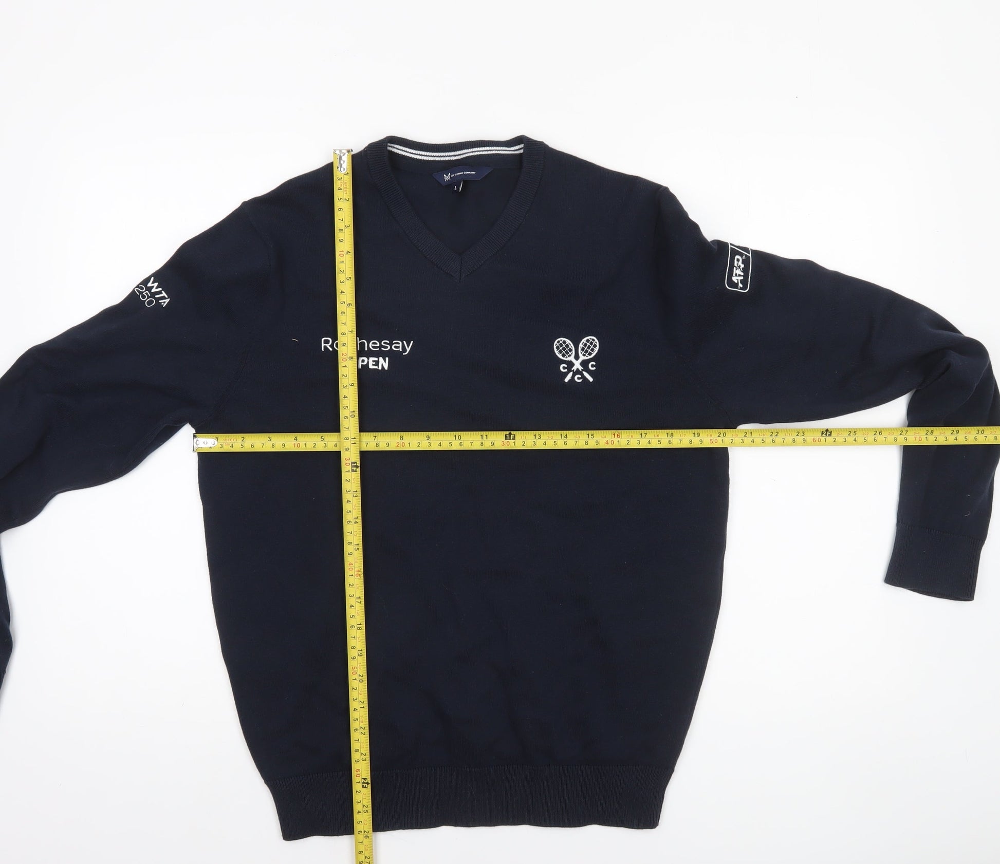 Crew Clothing Company Men’s Blue V-Neck Cotton Pullover Jumper L