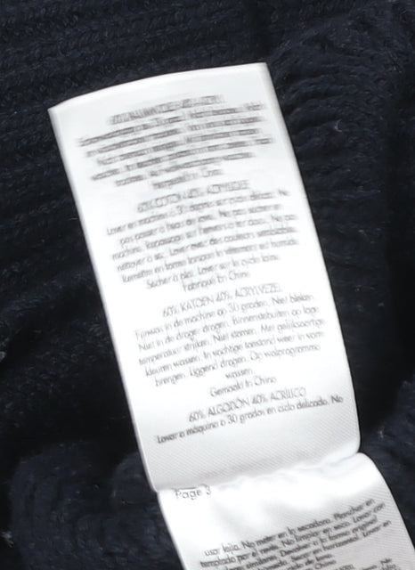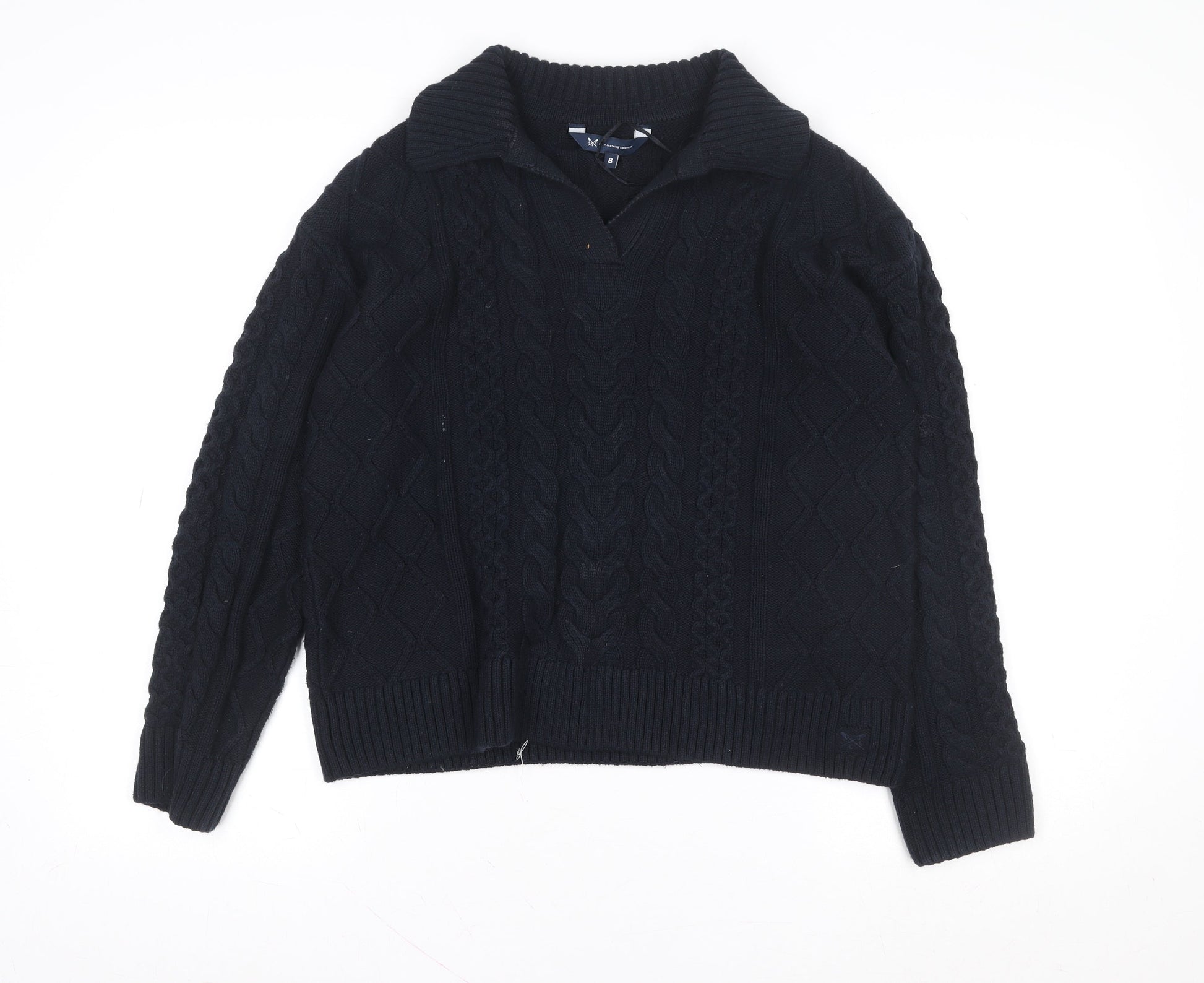 Crew Clothing Company Men's Blue Collared Cable-Knit Jumper Size M