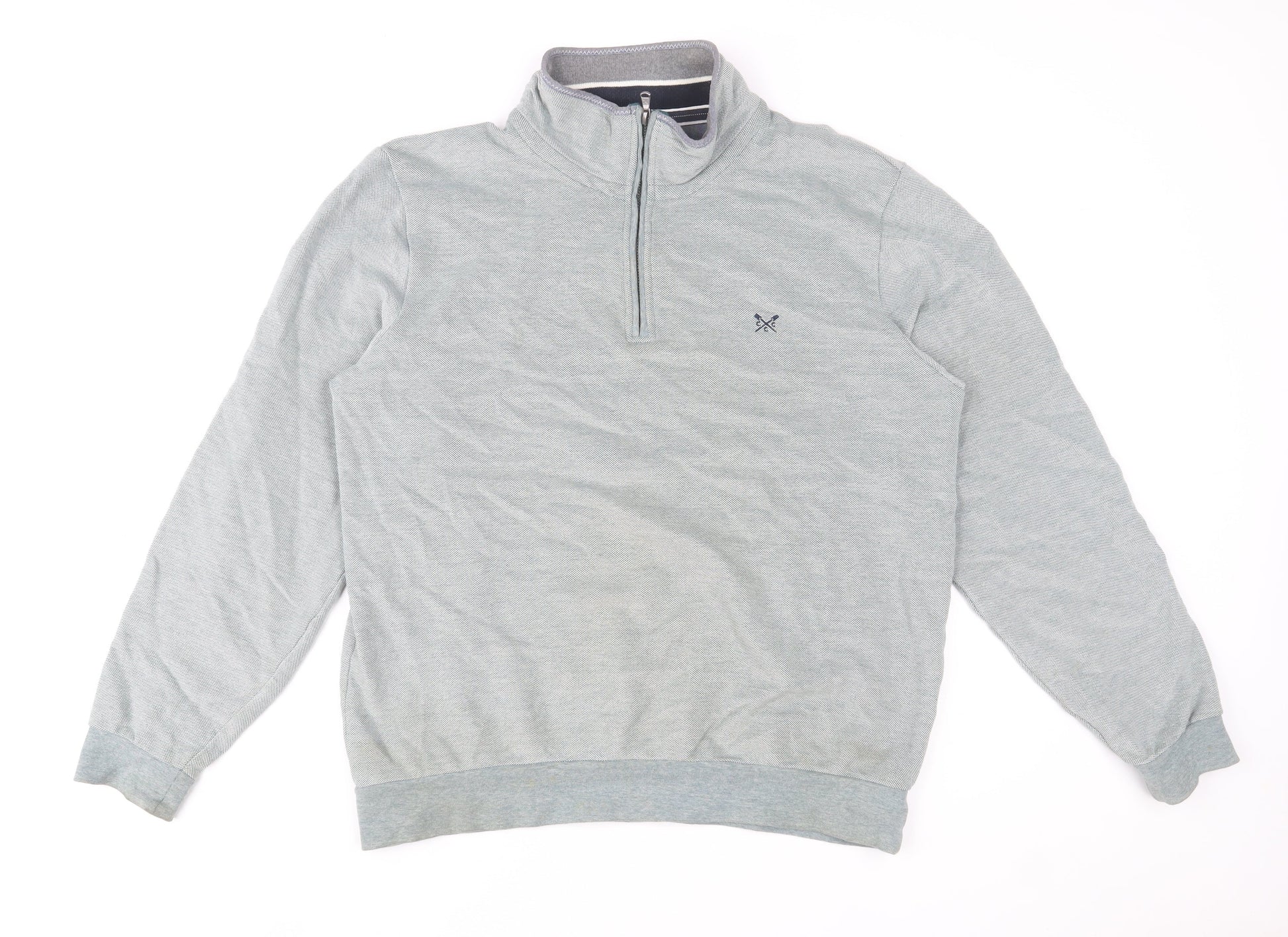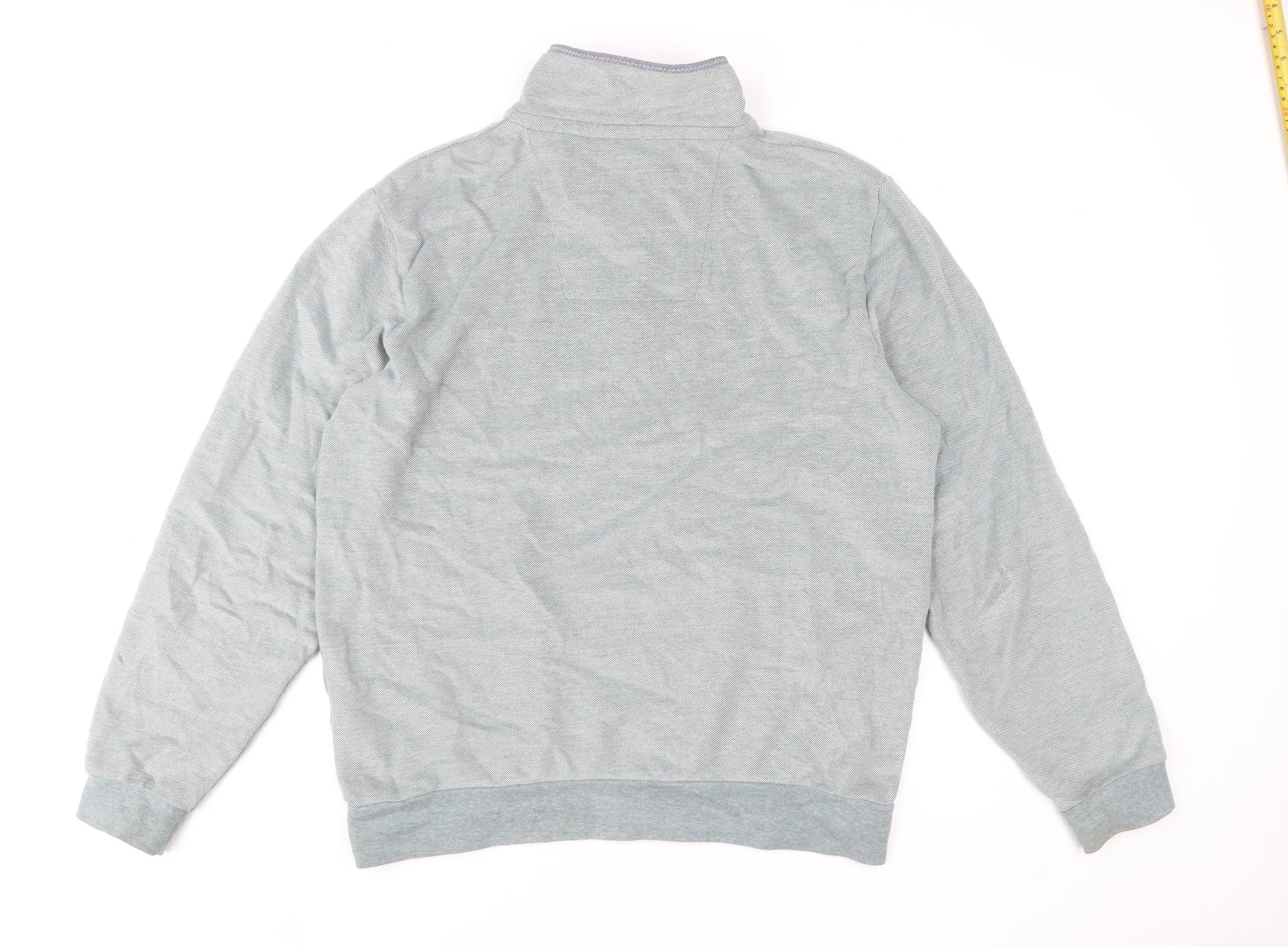 Crew Clothing Company Mens Grey L Half Zip Jumper High Neck Cotton Blend