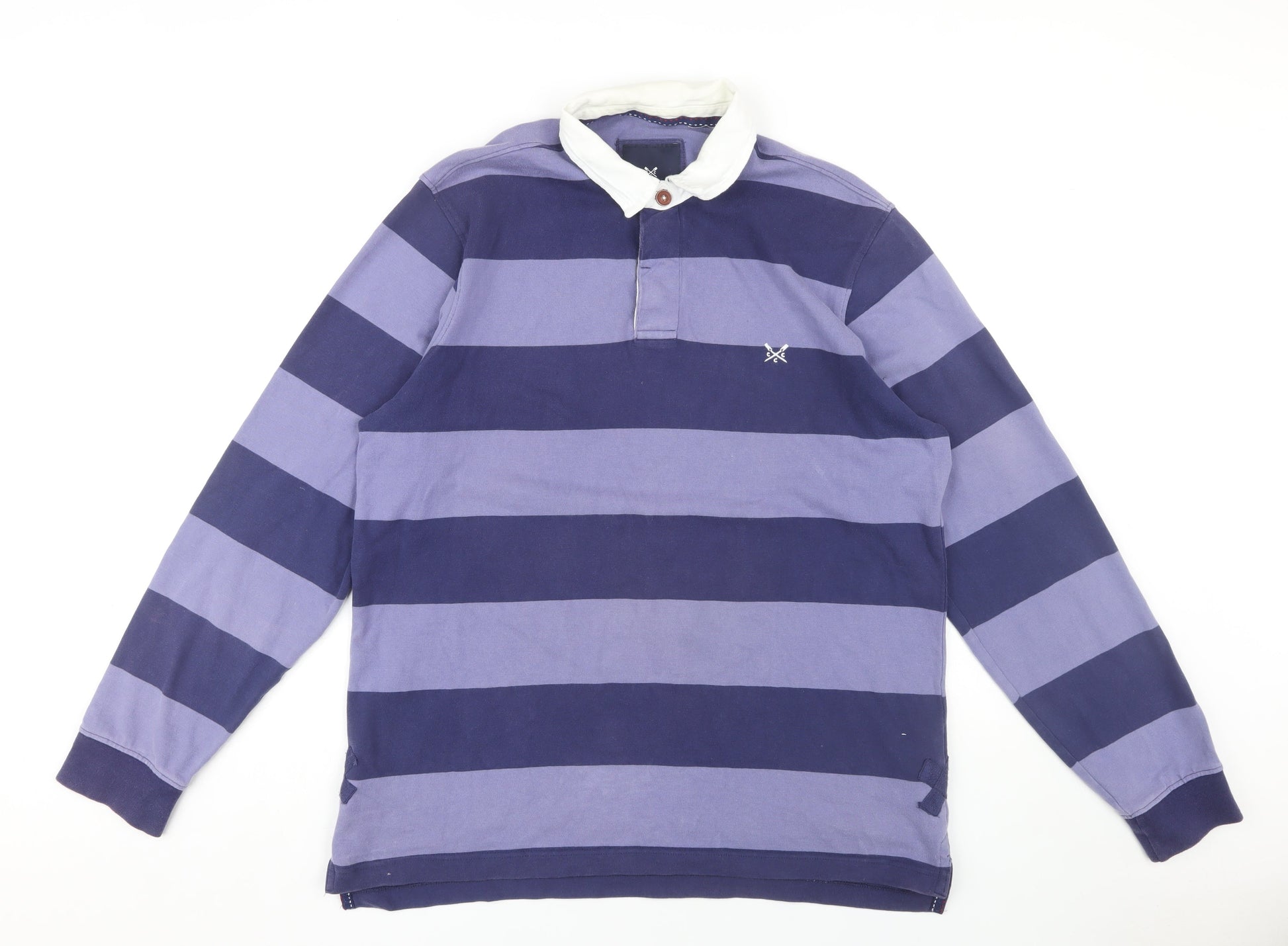 Crew Clothing Men’s Blue Striped Long Sleeve Polo L