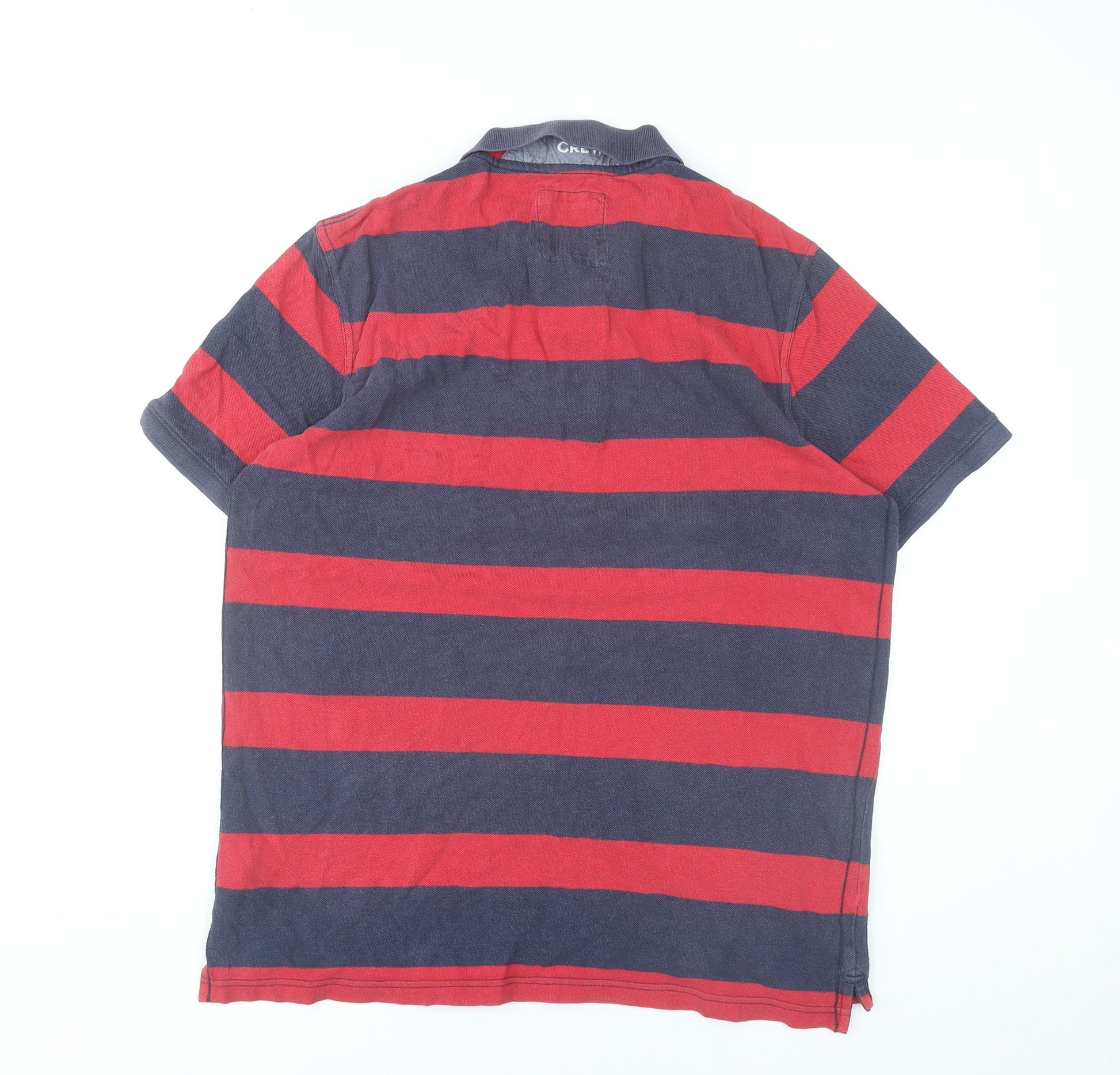 Crew Clothing Men’s Red Blue Striped Polo Shirt Size L Cotton