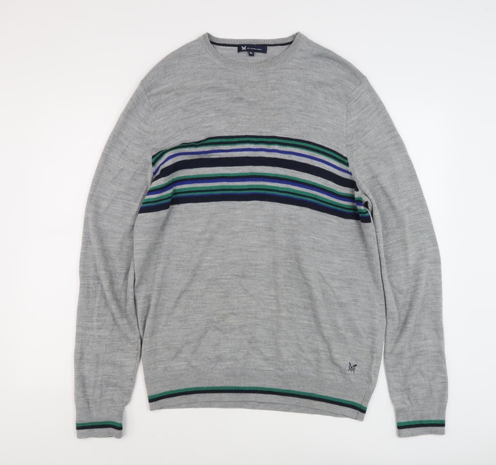Crew Clothing Mens Grey Striped XL Pullover Jumper