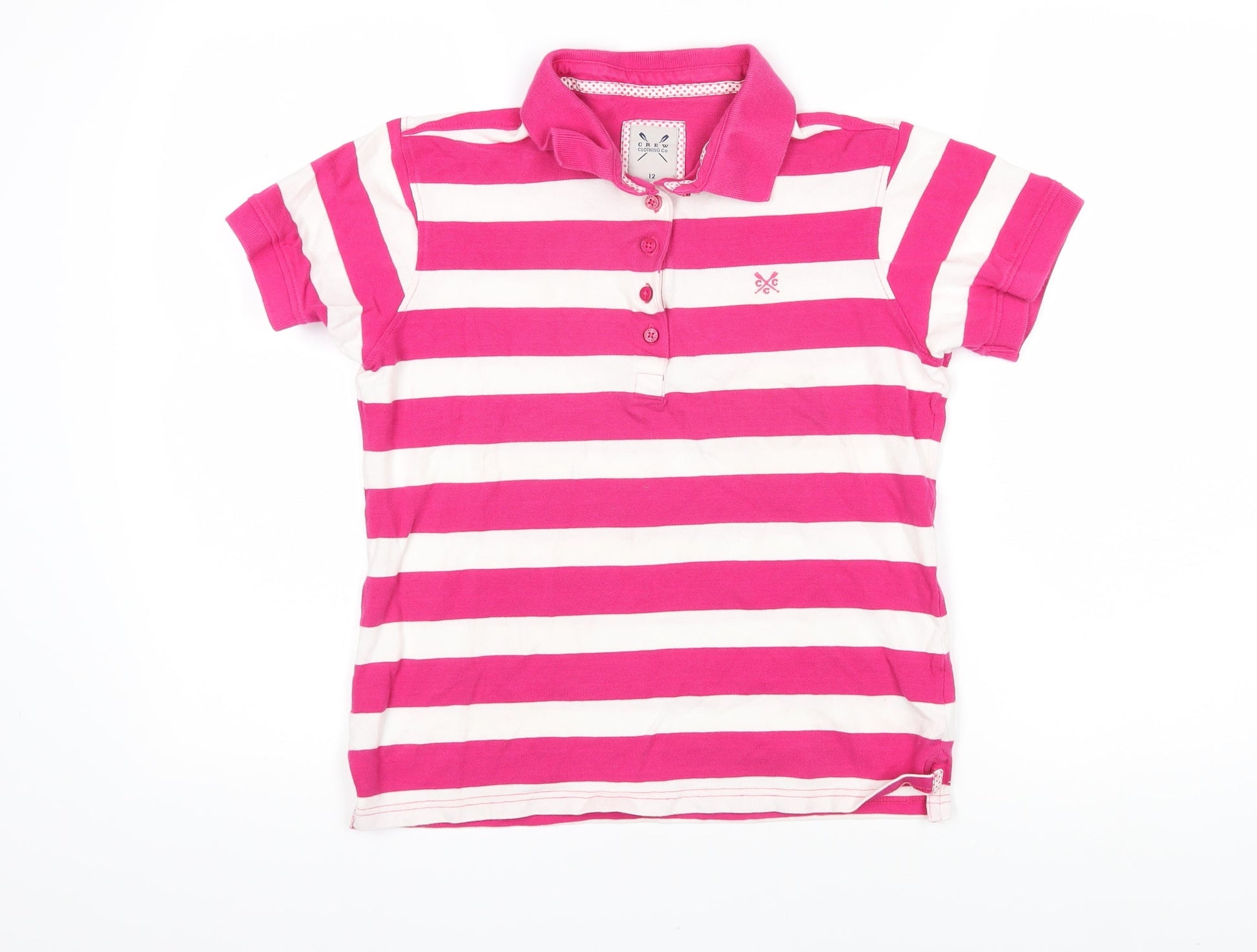 Crew Clothing Womens Pink Striped 100% Cotton Basic Polo Size 12 Collared