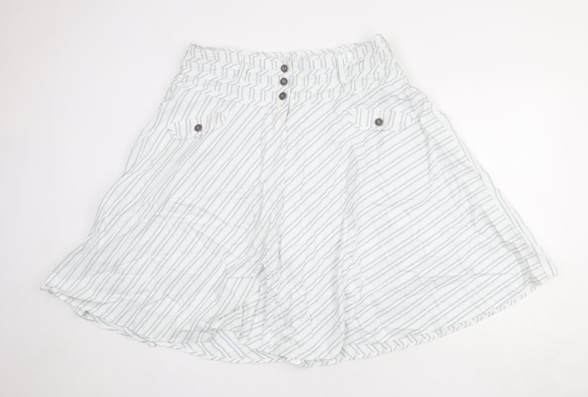 Crew Clothing Womens White Striped Cotton Swing Skirt Size 16 Button