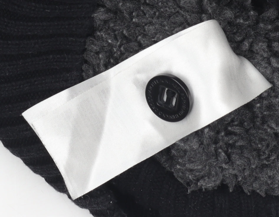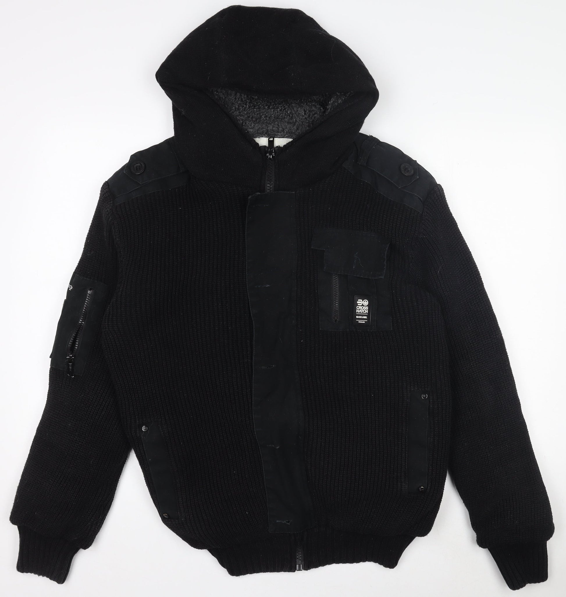Crosshatch Men’s Black Hooded Full Zip Chunky Knit Jumper XL