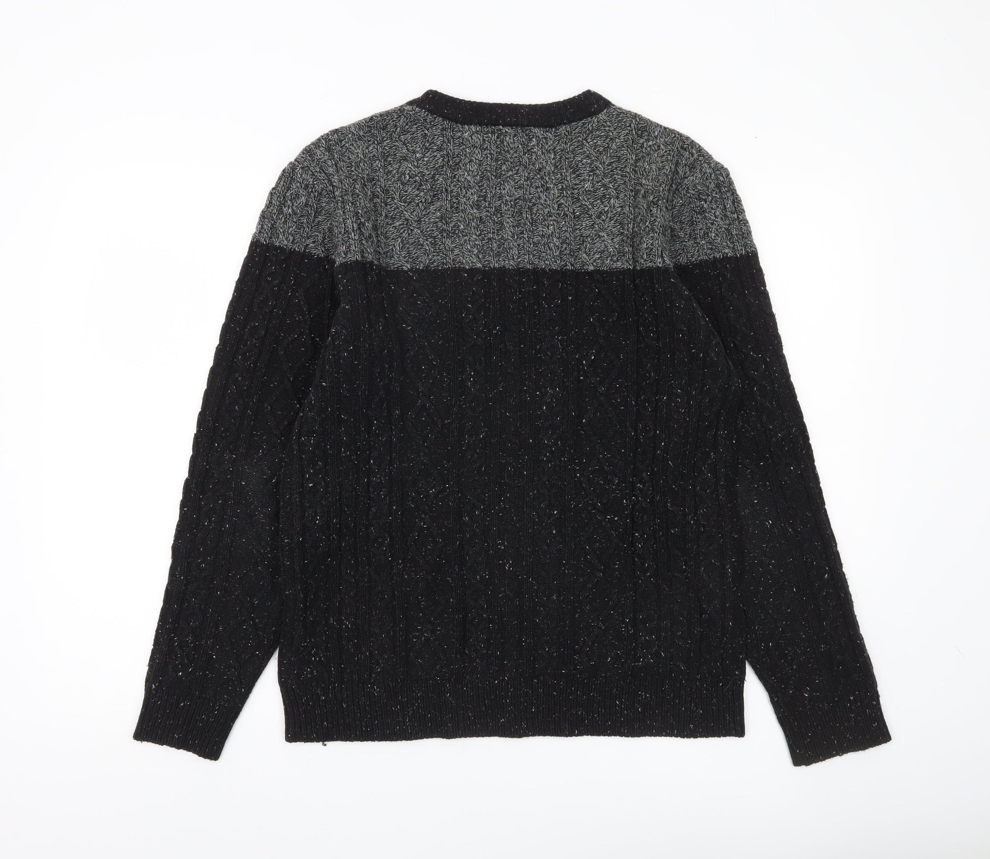 Crosshatch Mens Black Grey Cable-Knit Wool Blend Jumper Size S