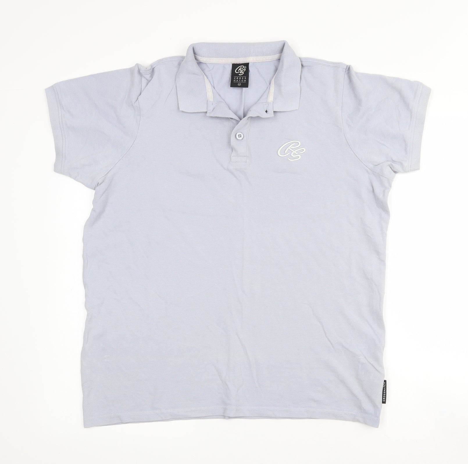Crosshatch Mens Blue Cotton Polo Size M Collared Button