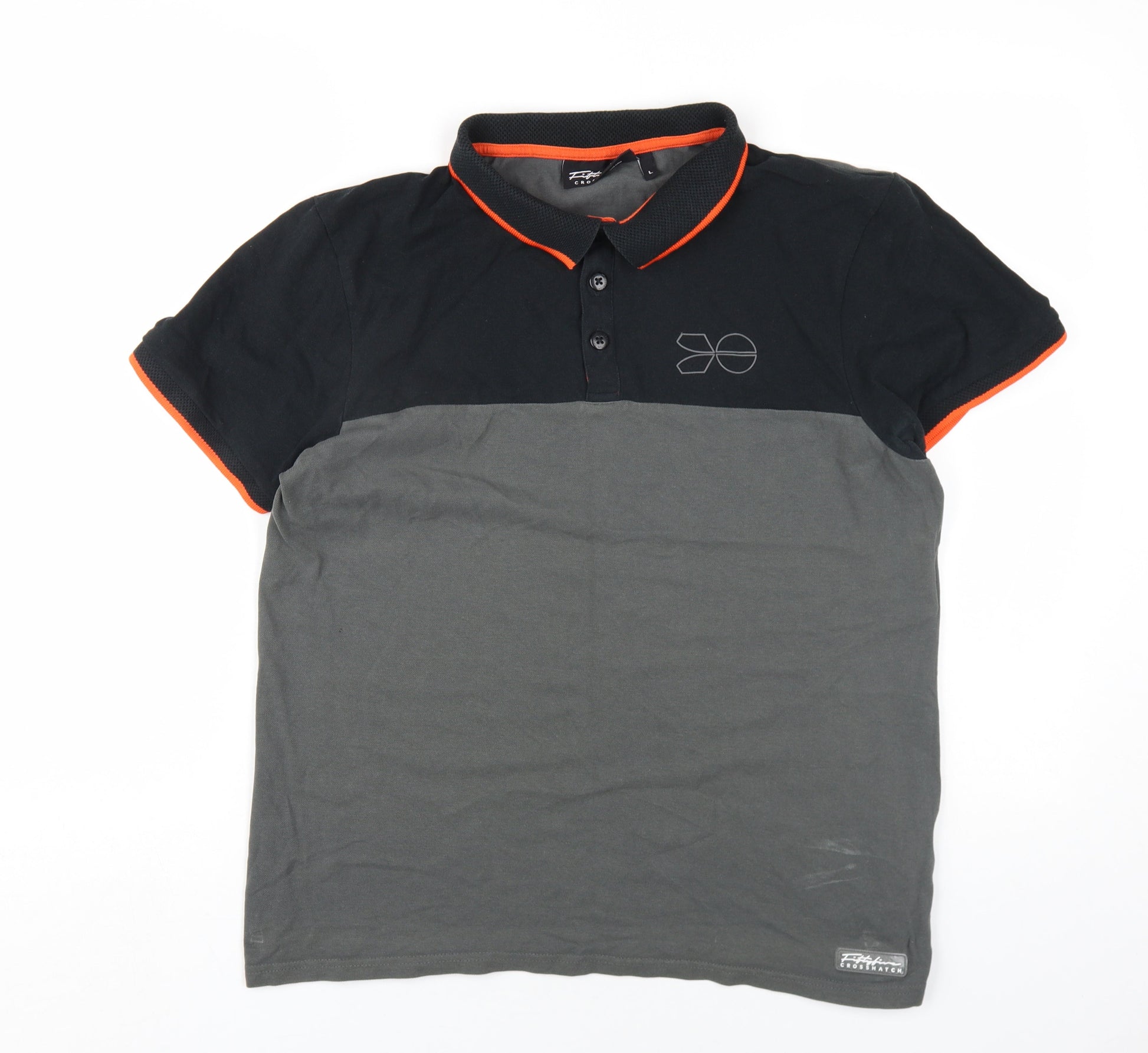 Crosshatch Mens Grey Cotton Polo Size L Collared Button