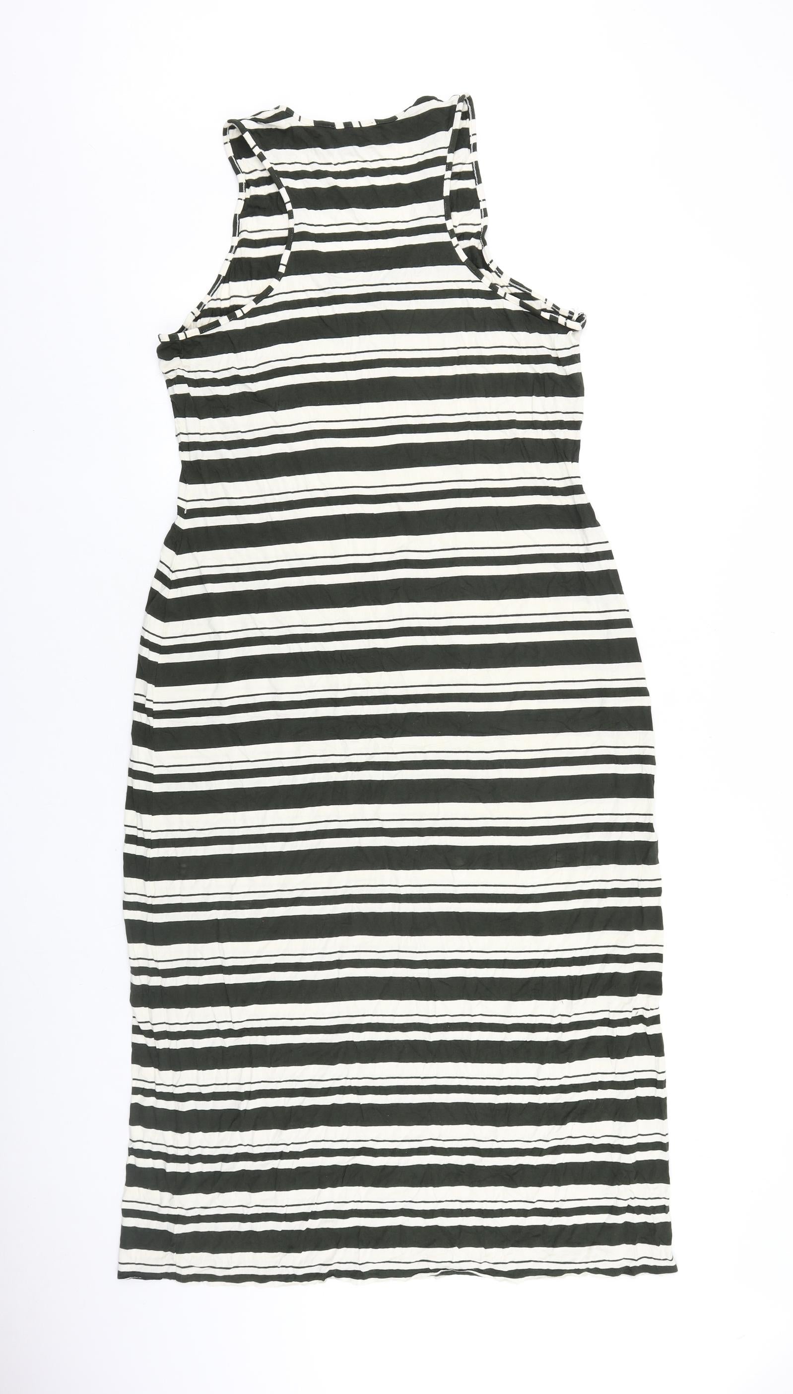 Cynthia Rowley Womens Black Striped Viscose Tank Dress Size XL V-Neck Pullover