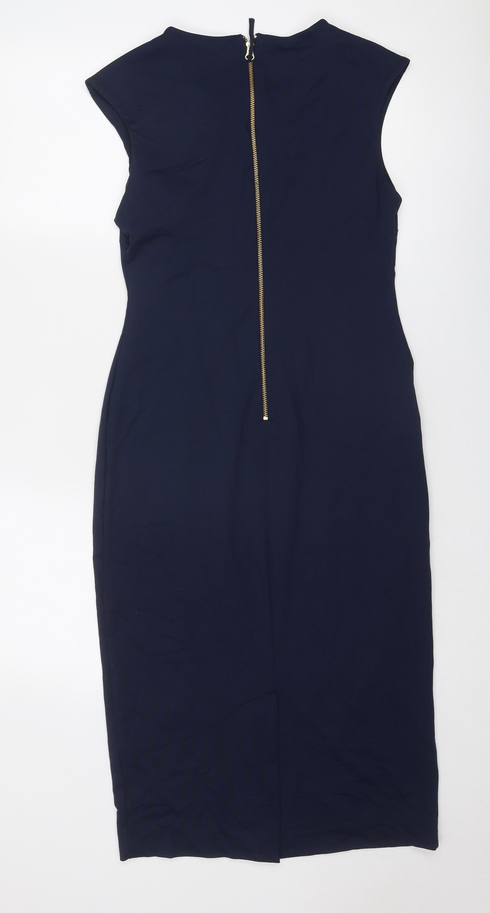 Cynthia Rowley Womens Blue Nylon Shift Size 8 Round Neck Zip