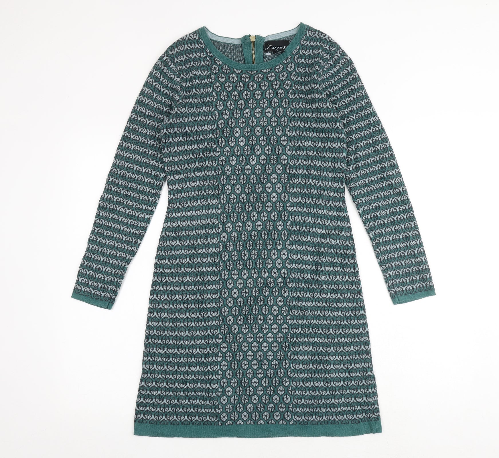 Cynthia Rowley Womens Green Geometric Cotton A-Line Size XS Round Neck Zip