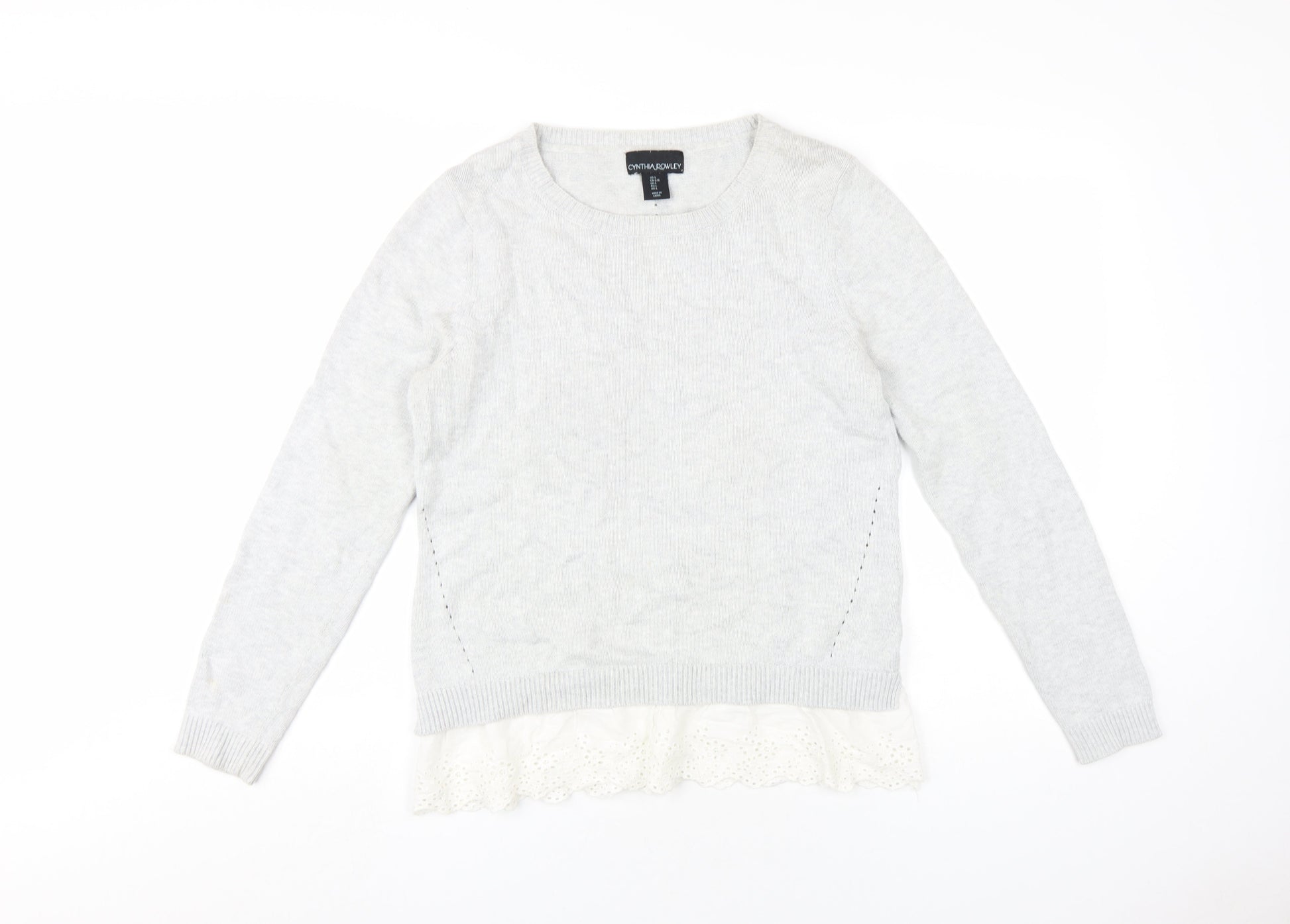 Cynthia Rowley Womens Grey Round Neck Cotton Pullover Jumper Size L
