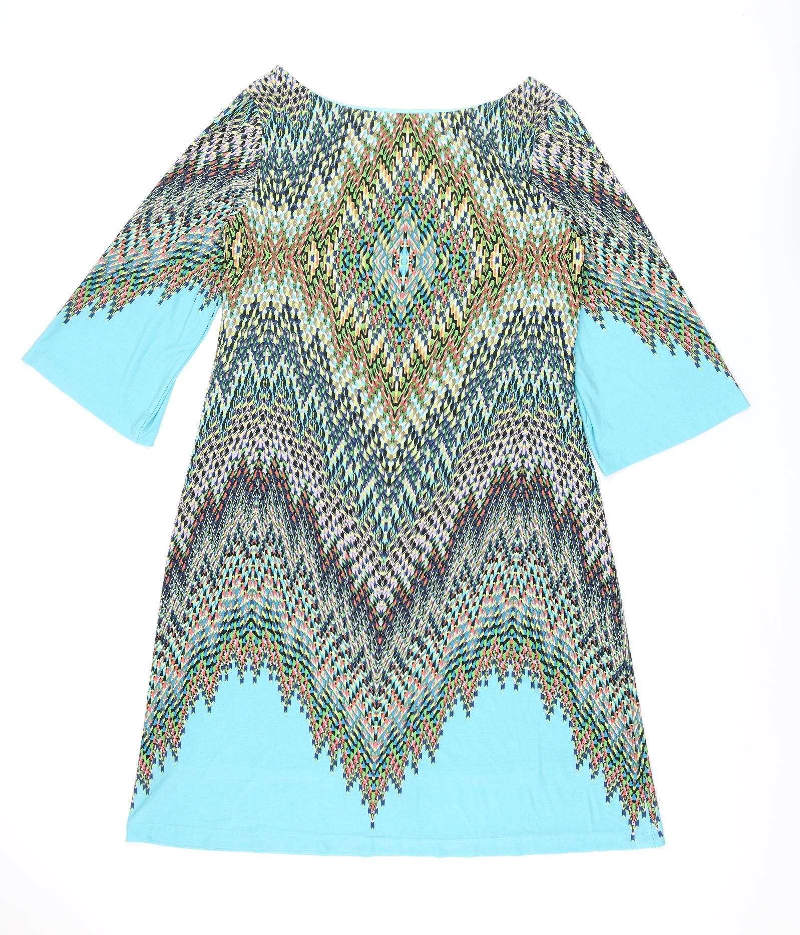 Cynthia Rowley Womens Multicoloured Geometric Polyester Shift Size 12 Boat Neck Pullover