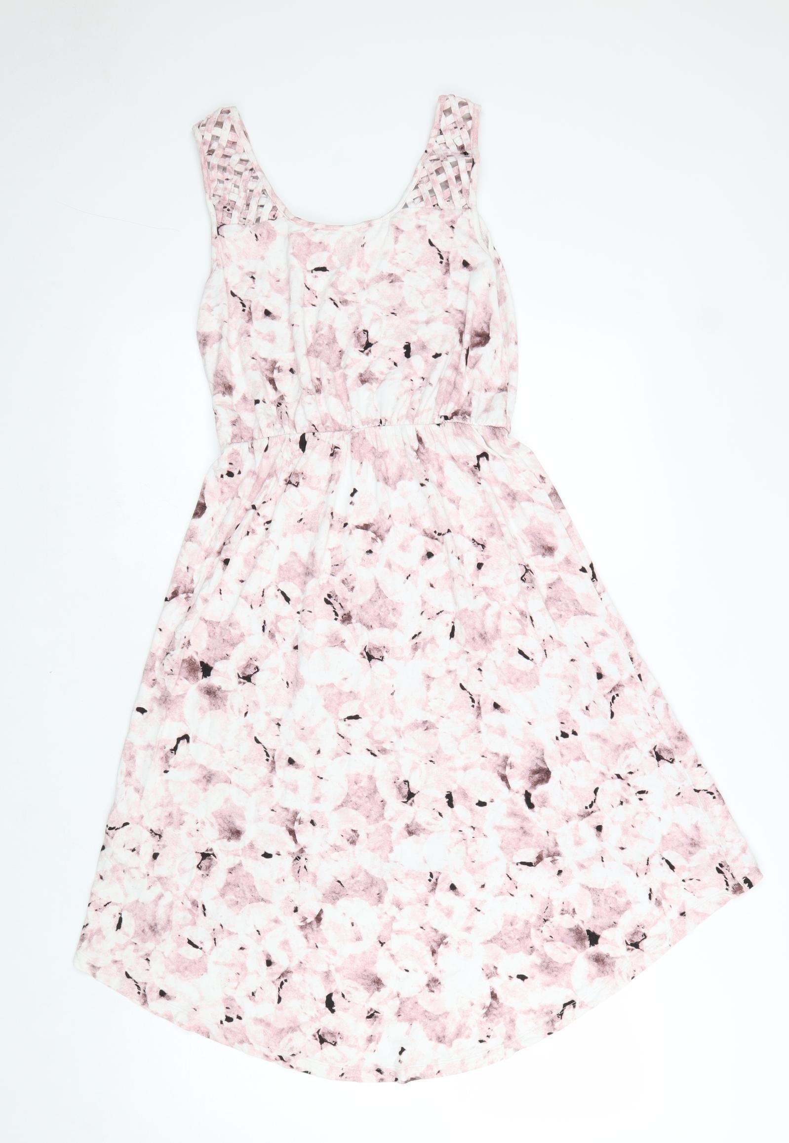 Cynthia Rowley Womens Pink Floral Viscose Fit & Flare Size S Scoop Neck Pullover